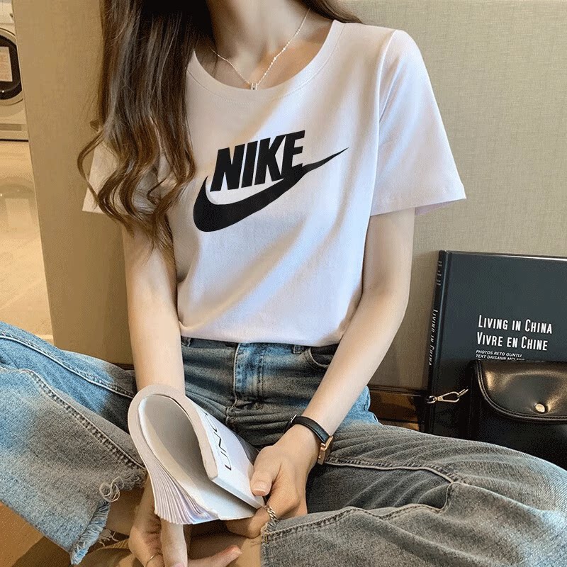📚 Nike耐克大logo印花短袖女子纯棉T恤夏季新款运动上衣透气休闲装