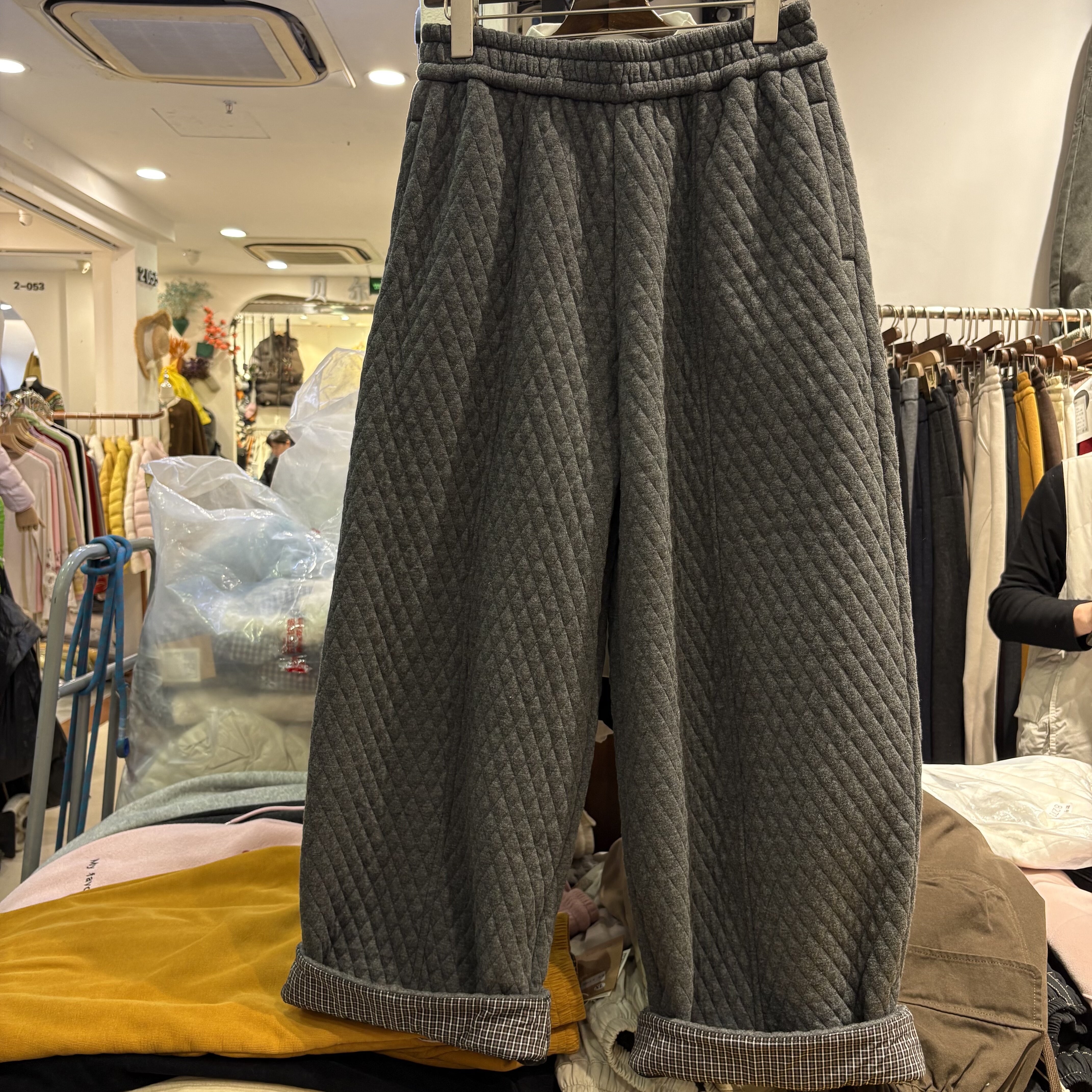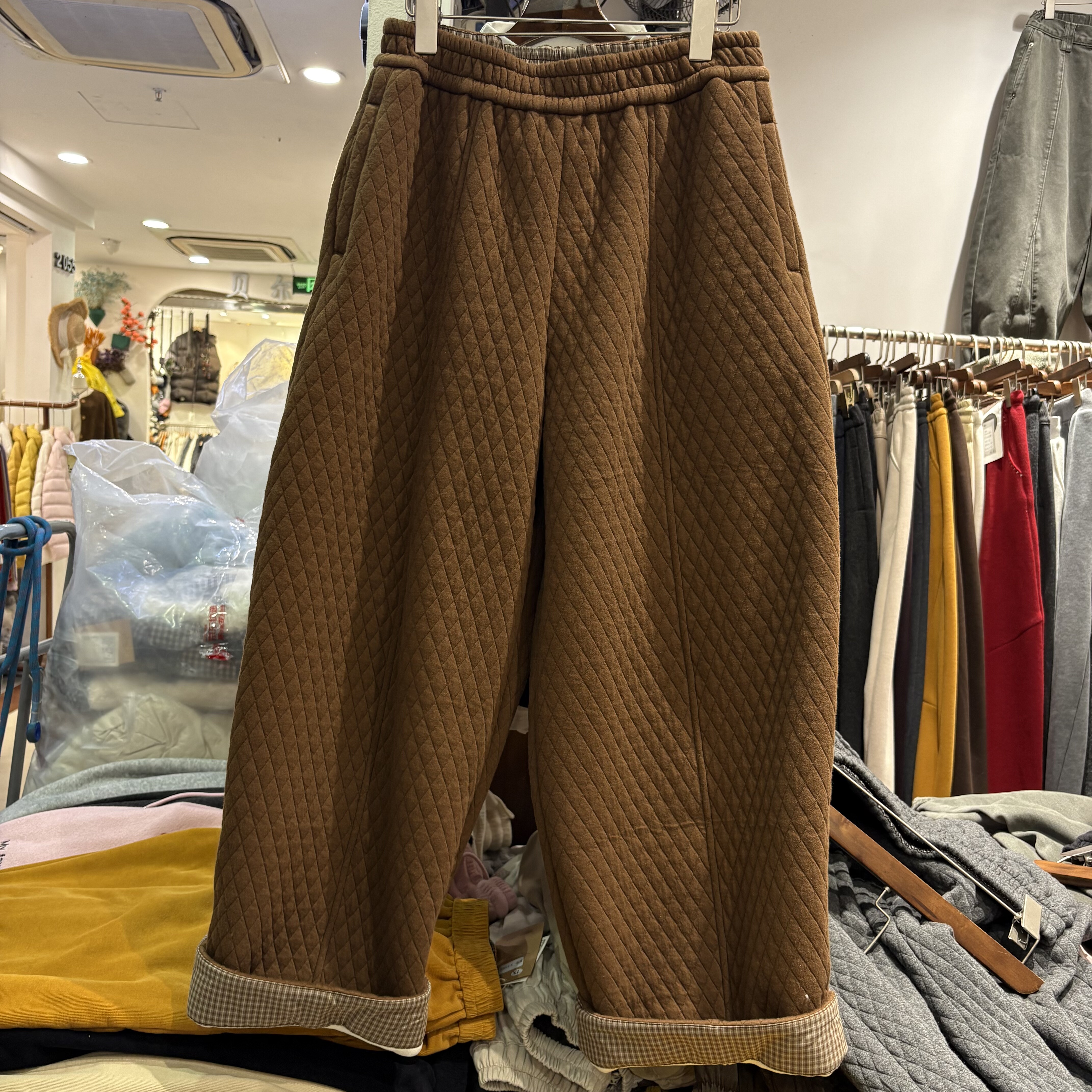 📚 依涵G161复古菱格加绒棉裤女2025冬款宽松加厚灯笼裤休闲萝卜裤