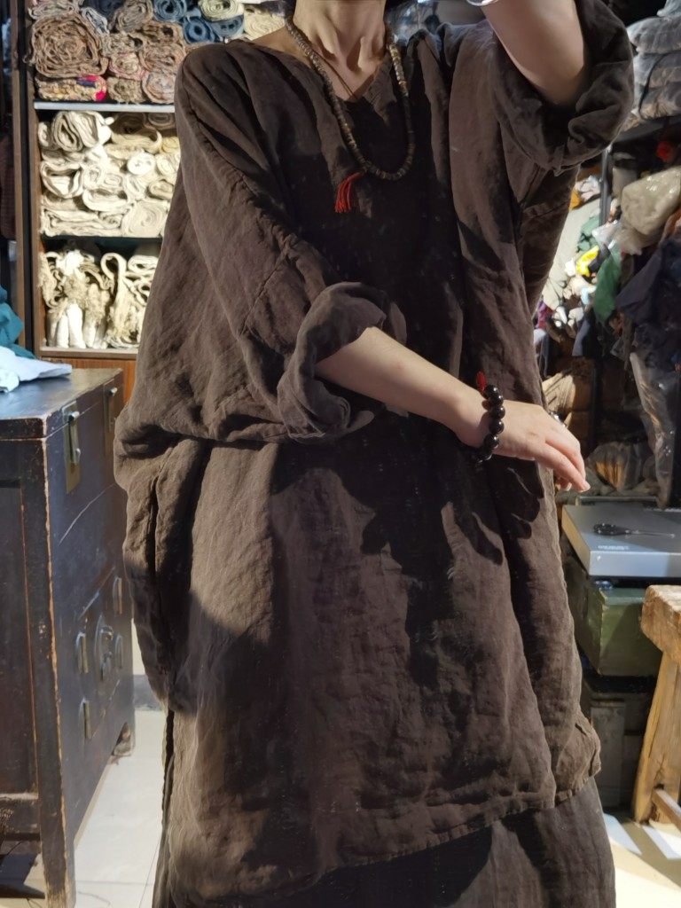 📚 沉香布衣草堂 套头大衫中长衣 亚麻 小兜 做旧上衣