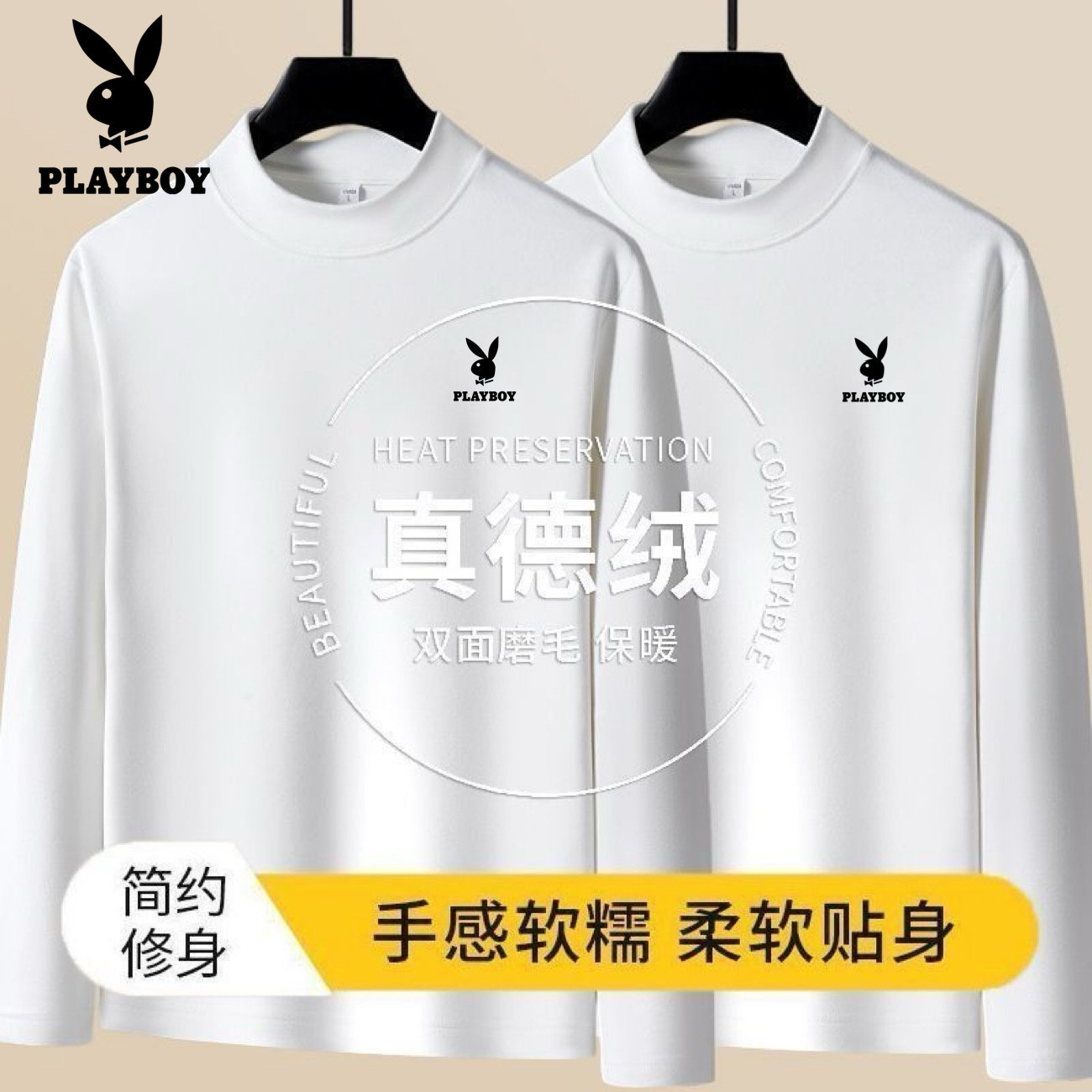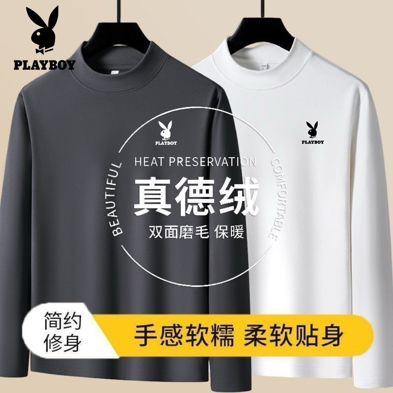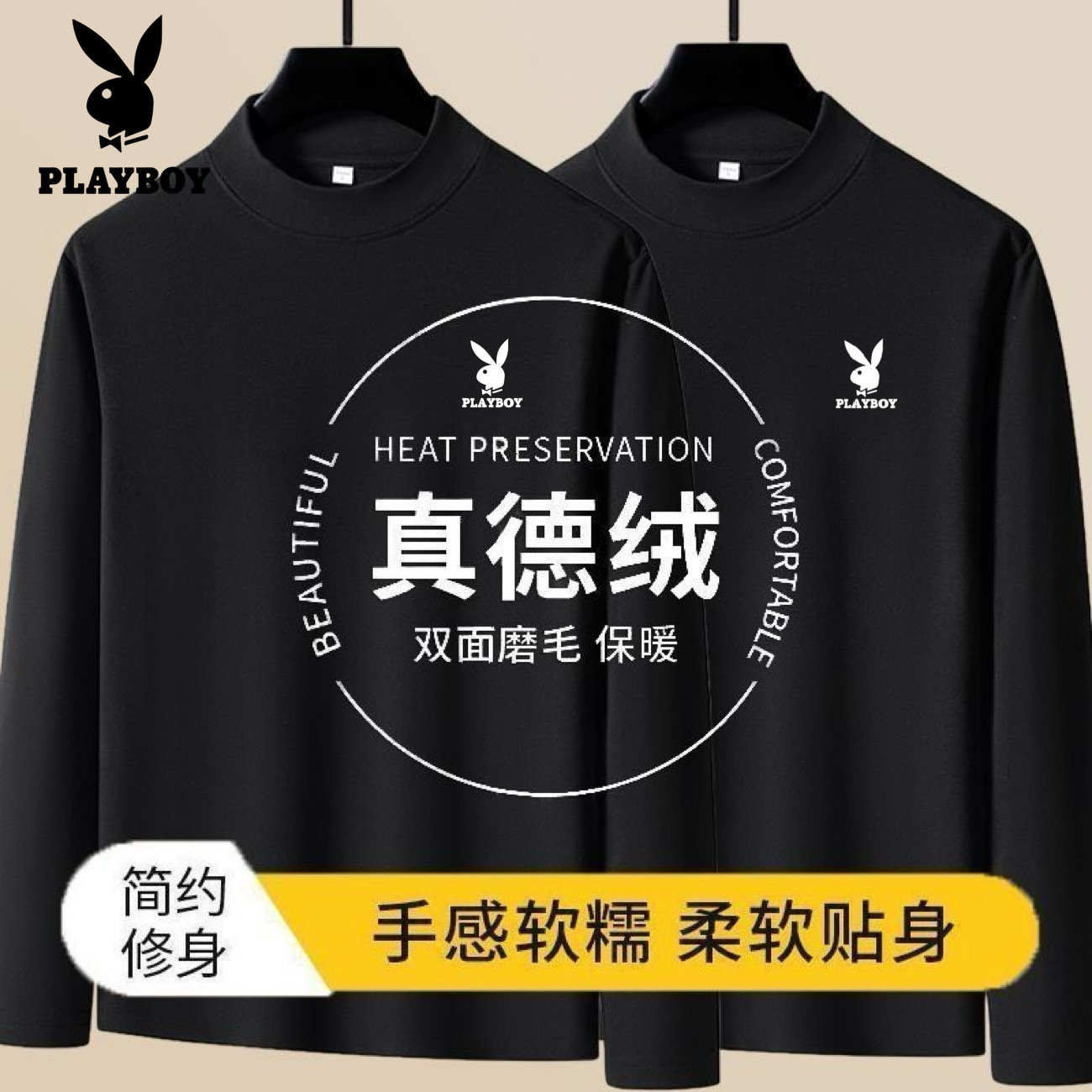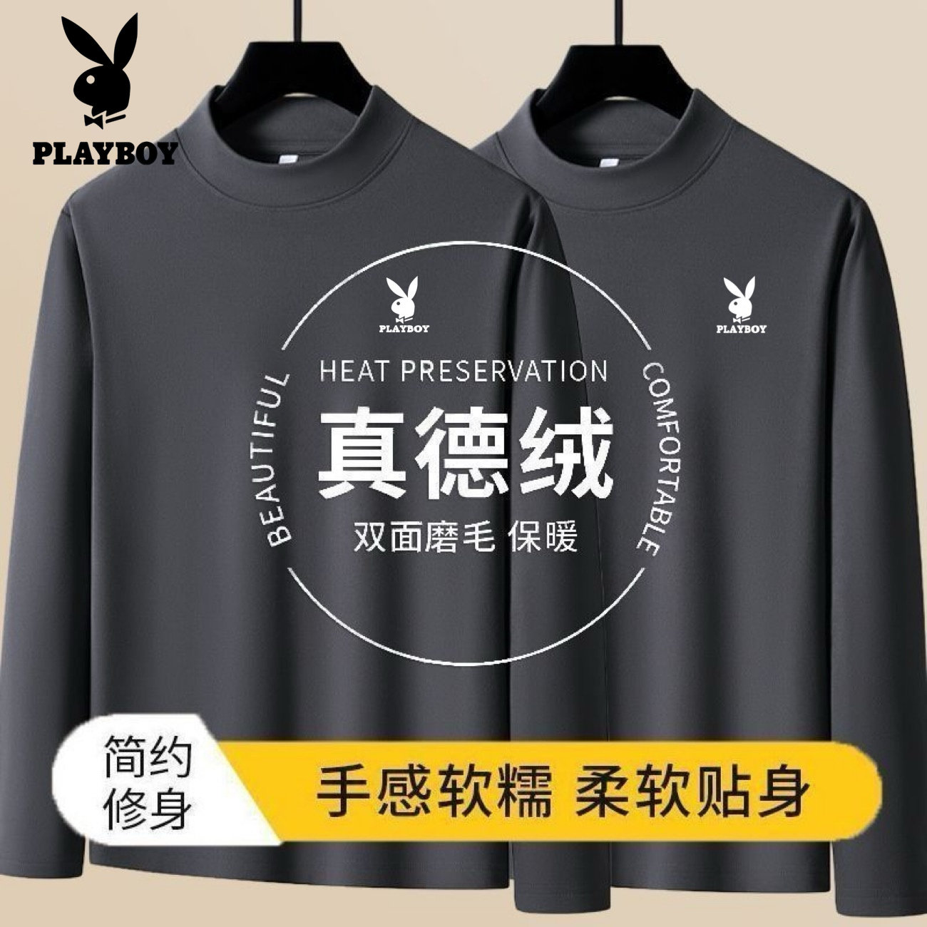 📚 花花公子秋冬德绒男士打底衫加绒加厚爸爸长袖T恤中老年保暖内衣