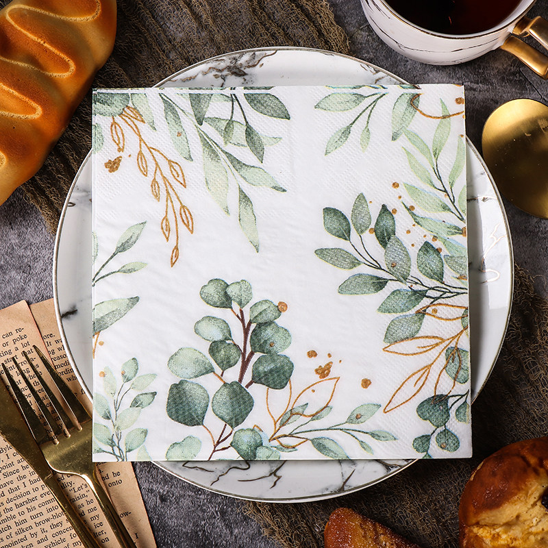 📚 新款尤加利彩色餐巾纸 蓝色印花纸巾 面巾纸 婚礼用纸 蝶骨巴特纸