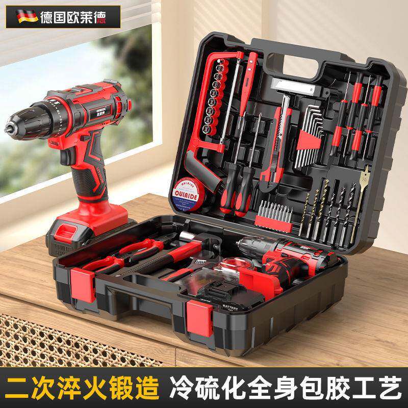 📚 欧莱德大功率锂电钻手电钻冲击钻五金工具套装电动螺丝刀工具箱