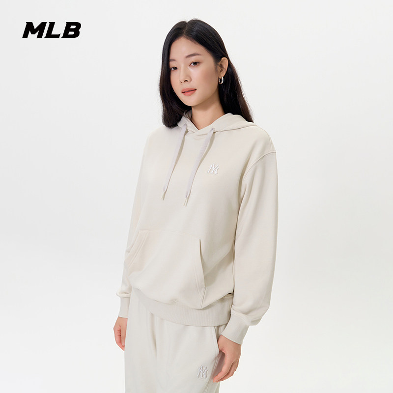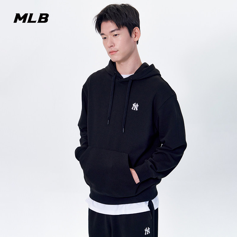 📚 MLB官方男女情侣纯色小LOGO潮流运动休闲连帽卫衣秋季新款HDB01