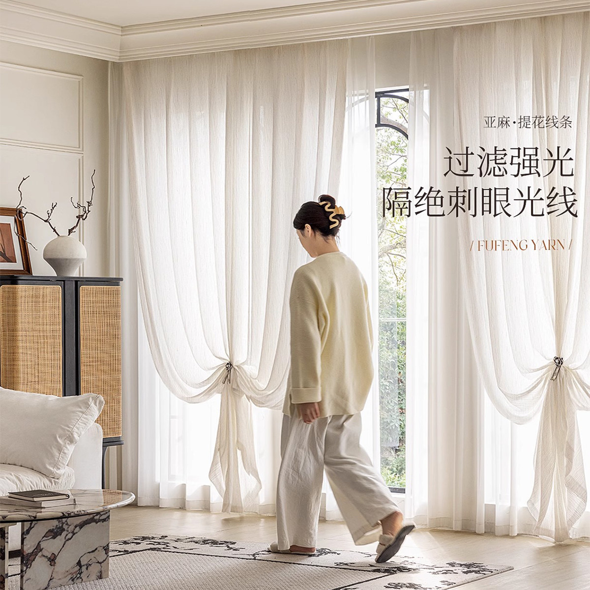 📚 「网红款扶风纱」亚麻纱帘阳台窗帘窗纱客厅高级感2025新款防晒