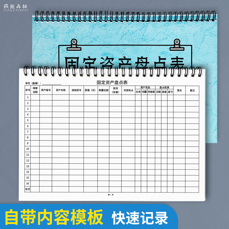 📚 固定资产盘点表固定资产登记本登记簿企业公司单位工厂物品明细盘点登记本行政办公物资库存报表资产盘查记录