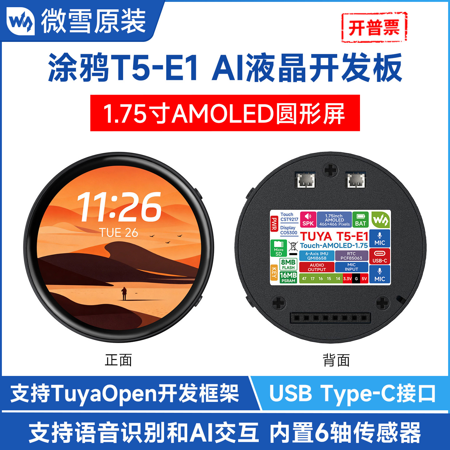 📚 微雪 涂鸦T5-E1 1.75英寸AMOLED开发板 支持TuyaOpen AI语音交互