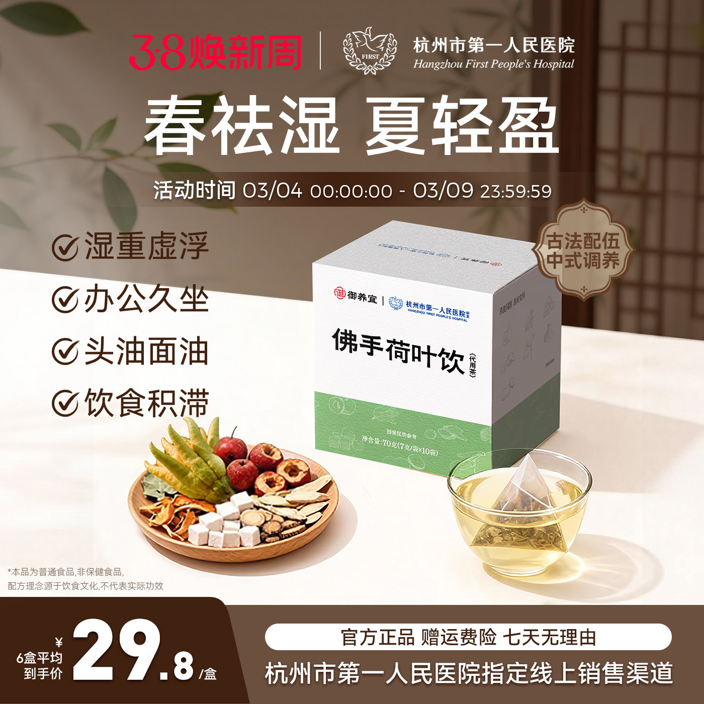 📚 【杭州市第一人民医院研发】佛手荷叶饮祛湿久坐肥肿养生茶旗舰