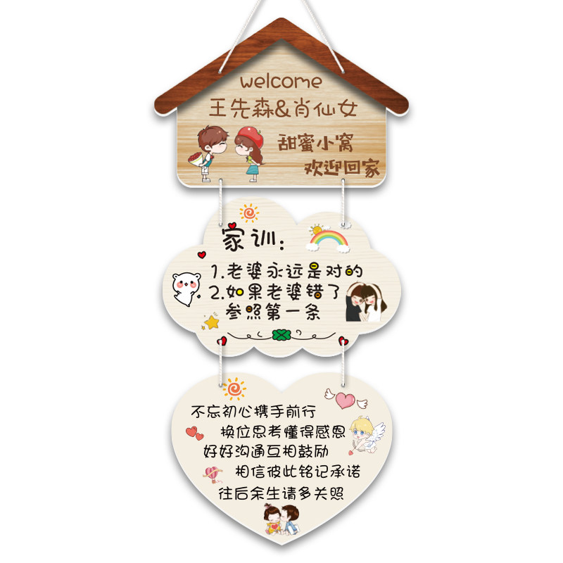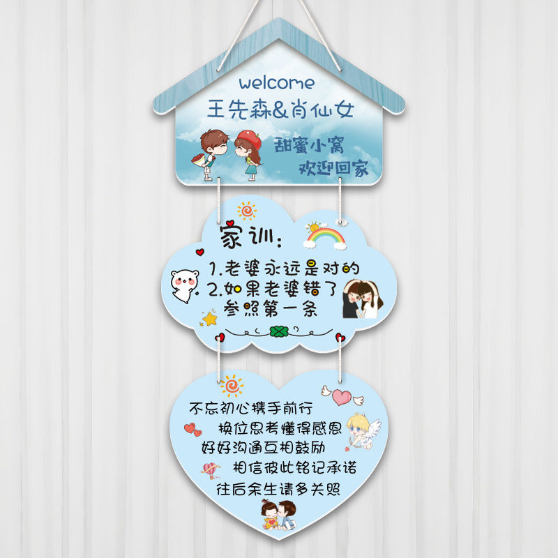 📚 创意定制 欢迎回家情侣家用房间卧室装饰门牌挂牌 网红入户门挂件