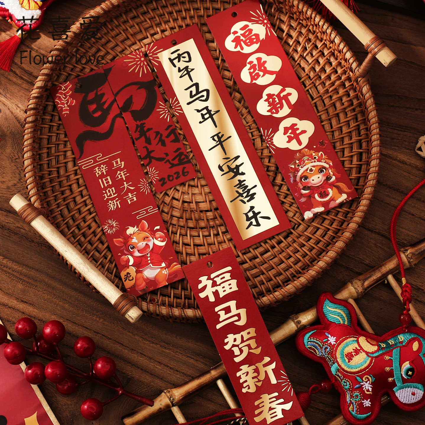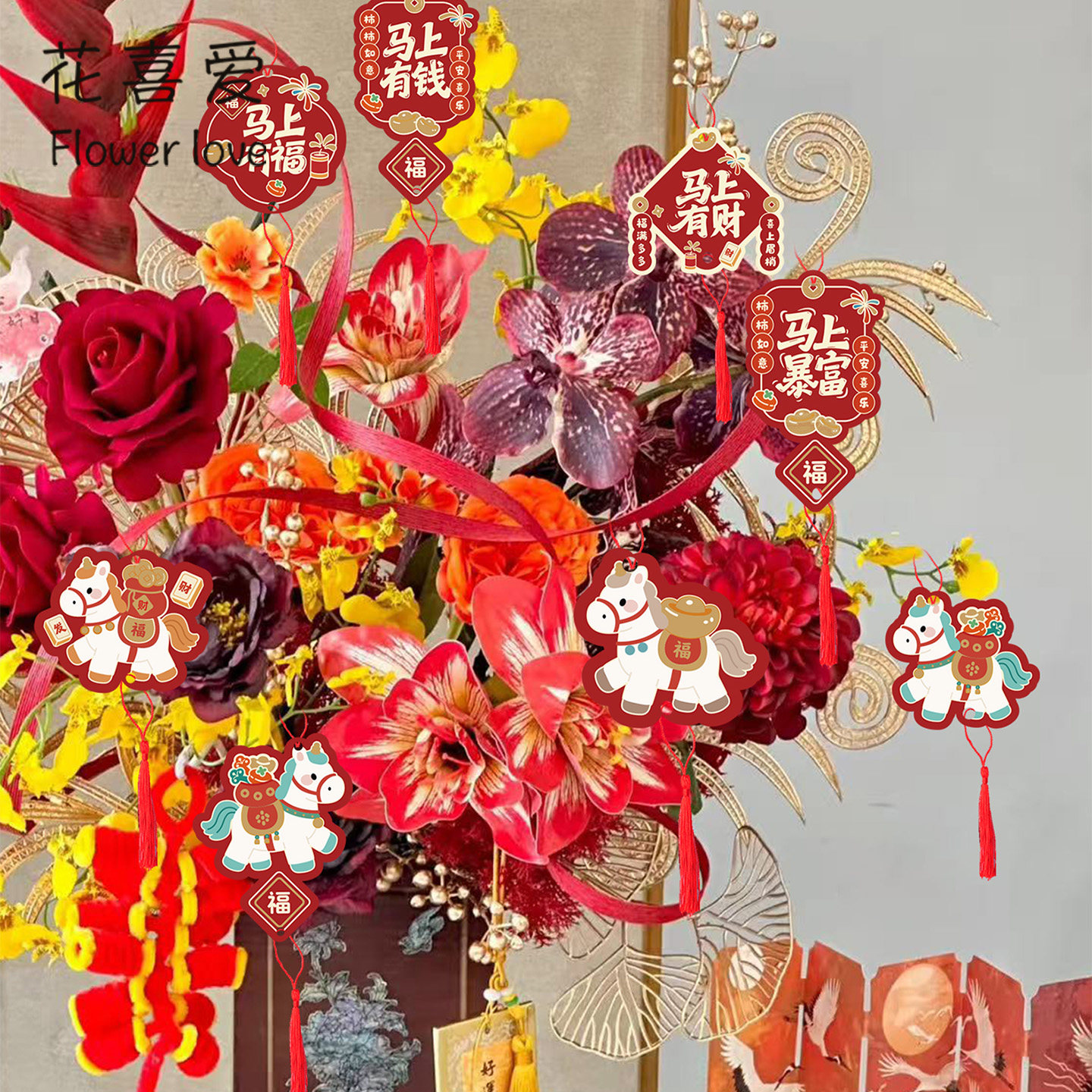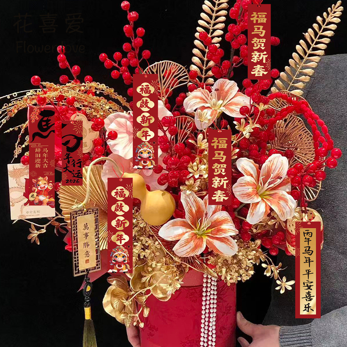 📚 【2026新年福卡全系】花喜爱新春年宵花福桶挂卡居家贺卡装饰卡