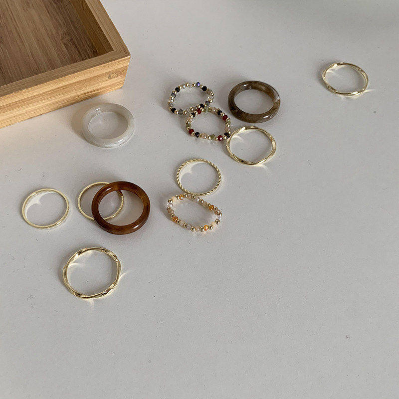 📚 韩系chic入 基础款4件套叠戴戒指 小众复古设计