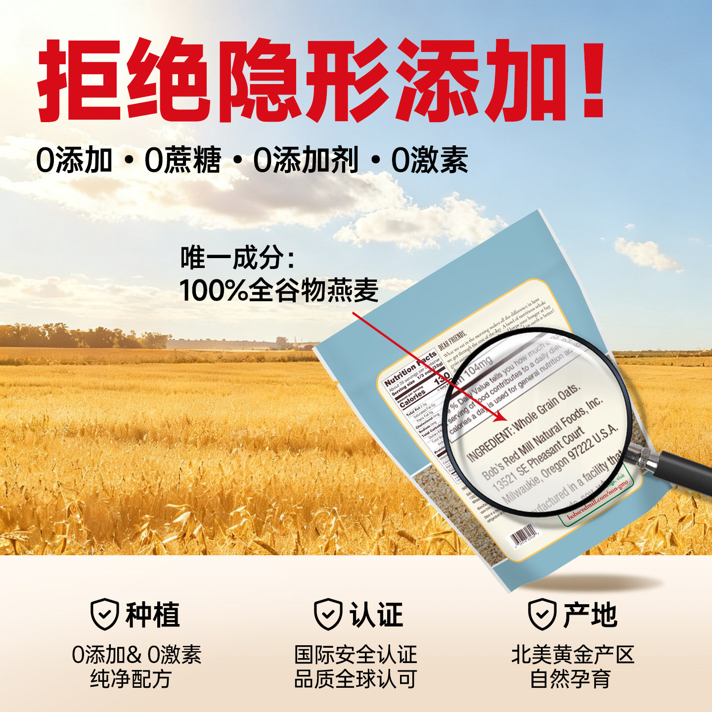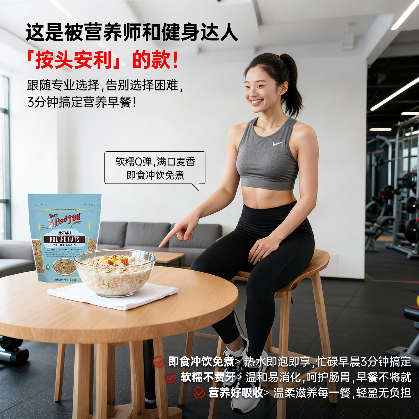 📚 鲍勃红磨坊美国进口纯即食燕麦片无添加免煮官方旗舰店正品原味