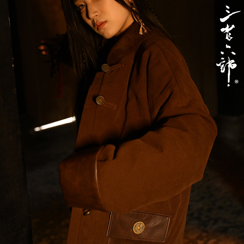 📚 三省六部·刑部【九宫】秋冬中国风铜钱扣高级拼接男士羽绒服唐装