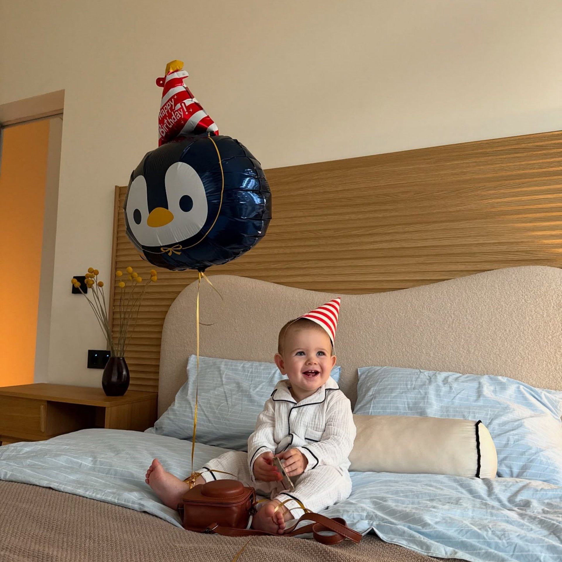 📚 条纹生日帽企鹅卡通气球男孩一周岁气球套餐布置抓周拍照道具派对
