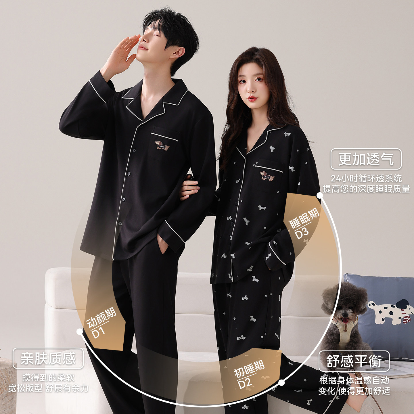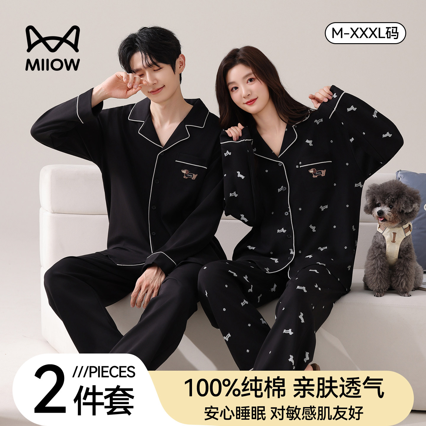 📚 猫人纯棉情侣睡衣女款高级感2026正流行春秋季大码男士家居服套装
