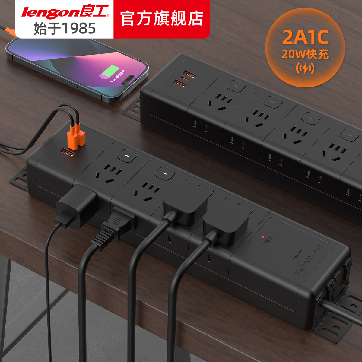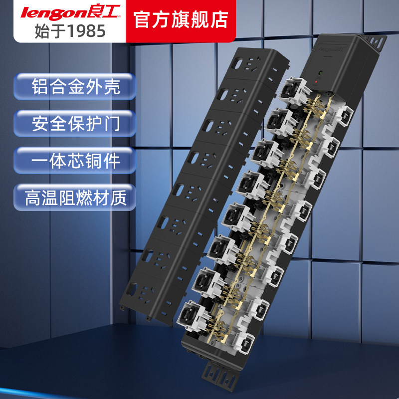 📚 良工家用侧插PDU机柜插座独立开关鱼缸分控排插工业拖接线板电竞