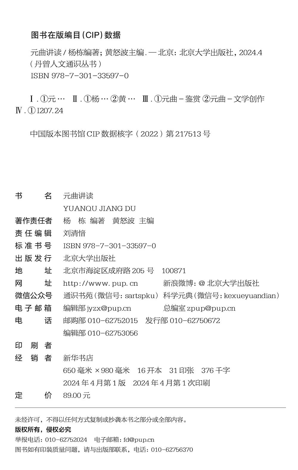 📚 元曲讲读 丹曾人文通识丛书 杨栋 黄怒波 北京大学出版社 9787301335970