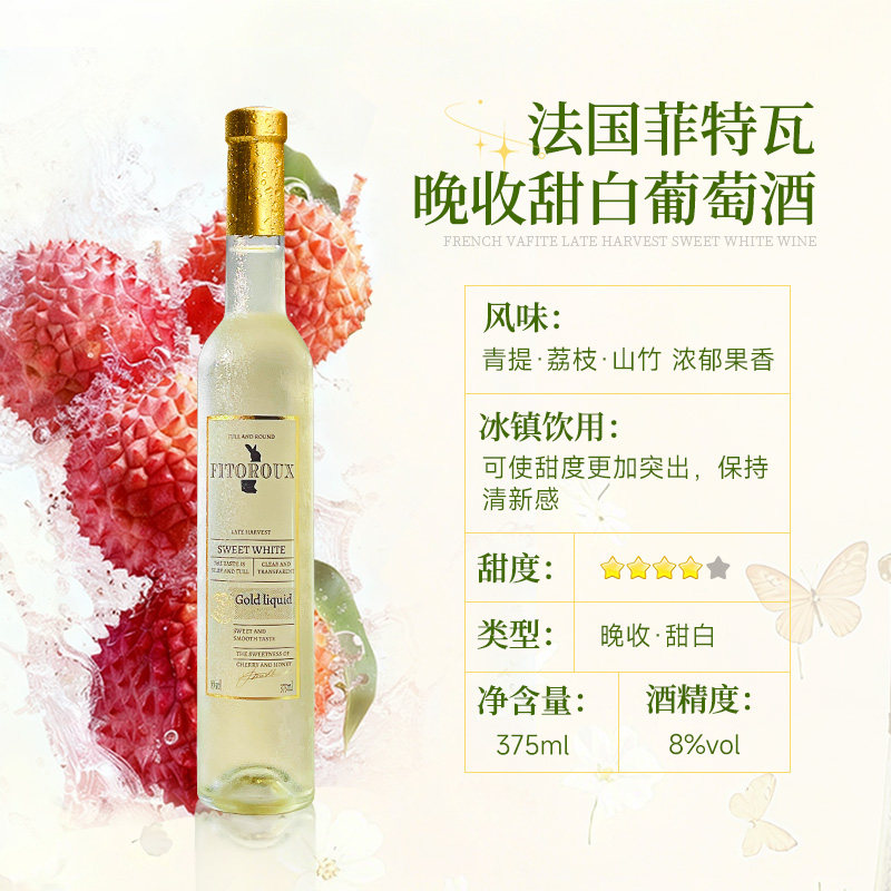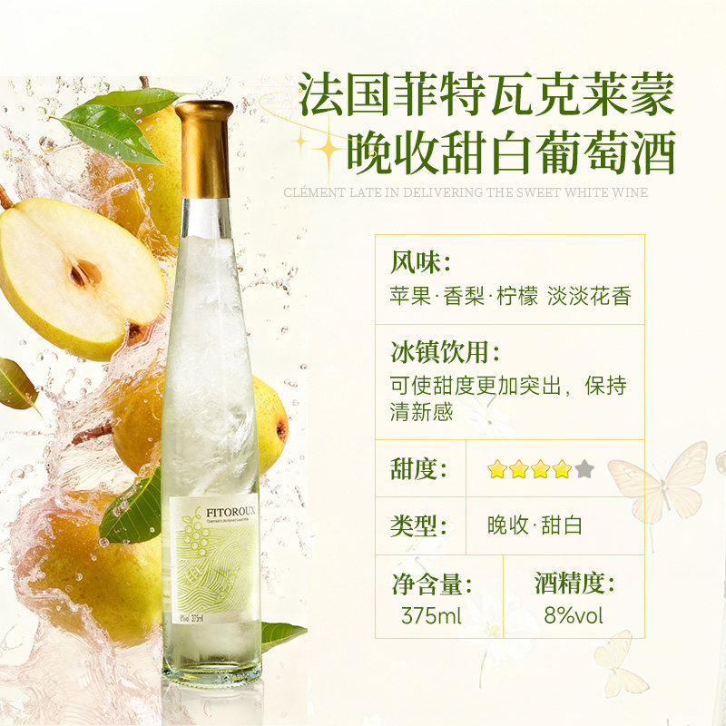 📚 【自营】山竹冰茉莉法国原酒进口晚收甜白葡萄酒微醺礼盒赠香槟杯