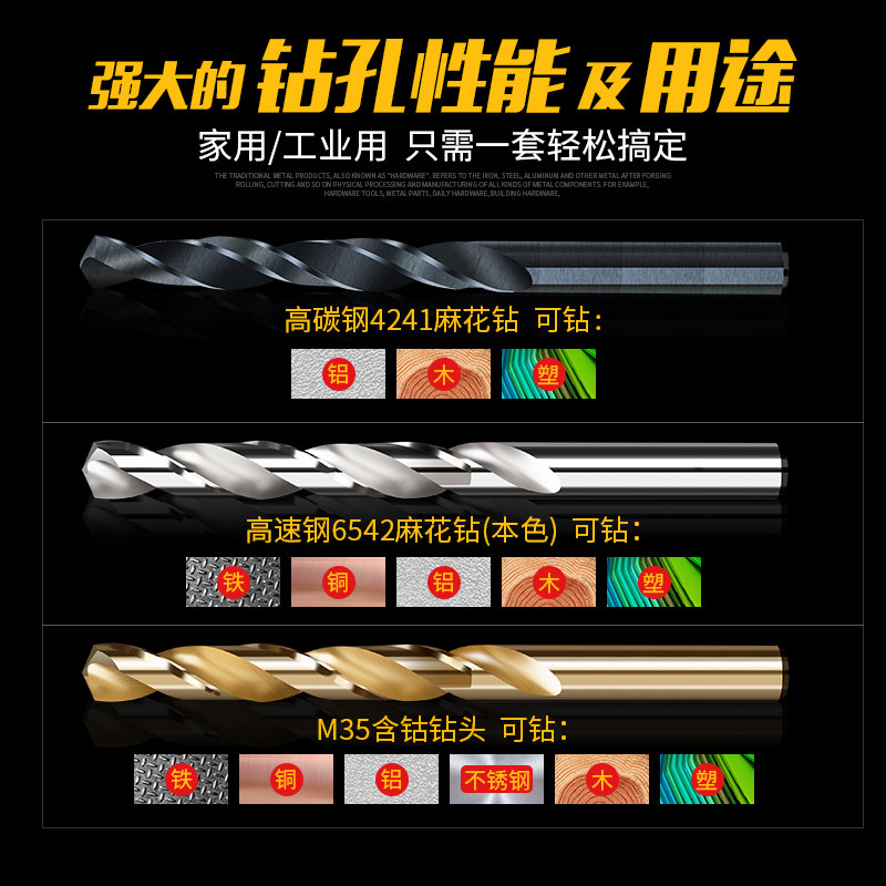 📚 钻头套装麻花钻头家用金属打孔木工不锈钢手电钻转头多功能1-10mm