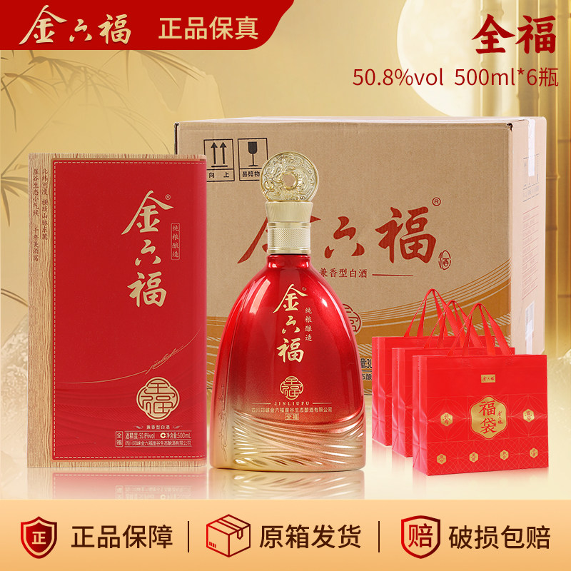 📚 金六福全福兼香型白酒50.8度500ml*6瓶整箱纯粮食酒宴请送礼长辈