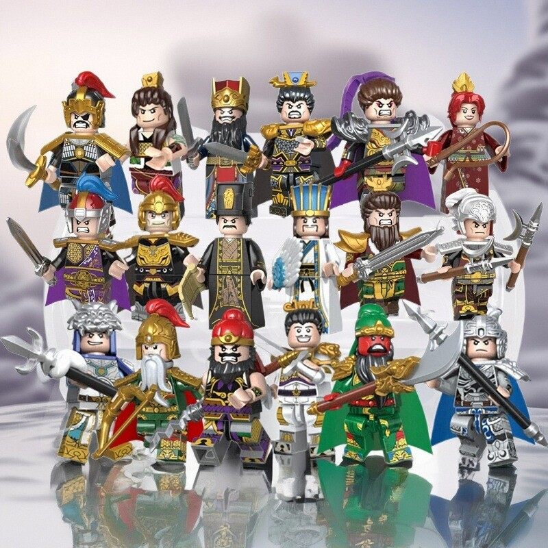 📚 迪库三国英雄人物积木人仔玩具 关羽吕布诸葛亮儿童益智桌面摆件