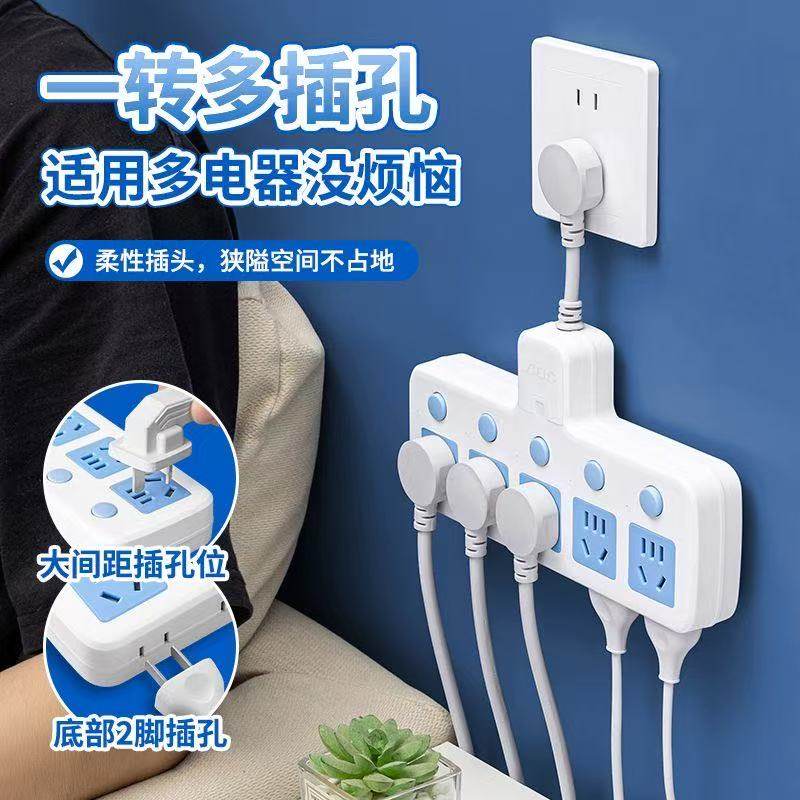 📚 大功率多功能转换器插座扩展插头家用排插一转多孔位插线板带夜灯