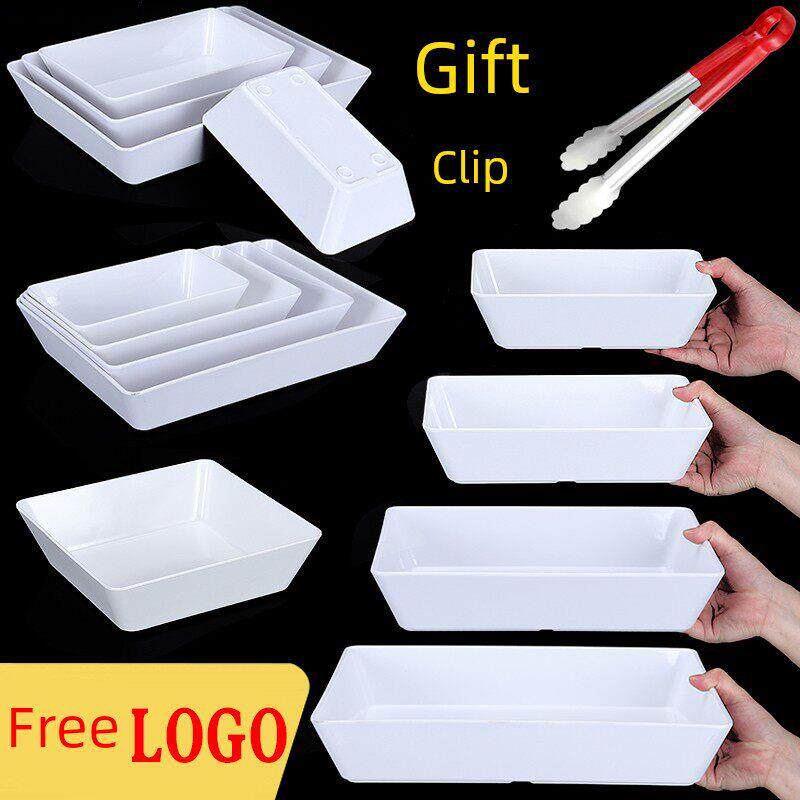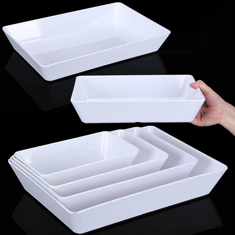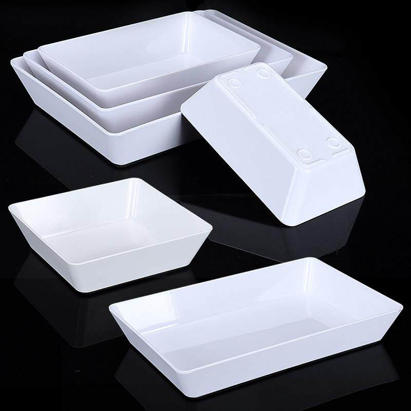 📚 三聚氰胺彷瓷矩形板商业红烧熟食冷鲜肉托盘白色塑料串冷盘展示板