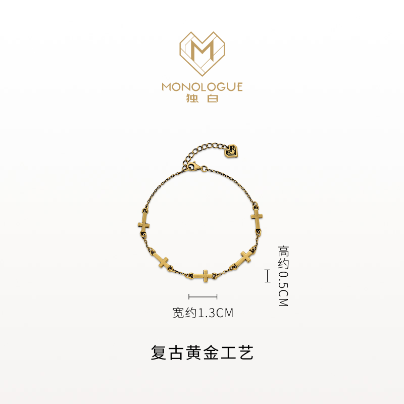 📚 MONOLOGUE独白链金主义复古黄金十字手链MR1692优雅简约情人节礼