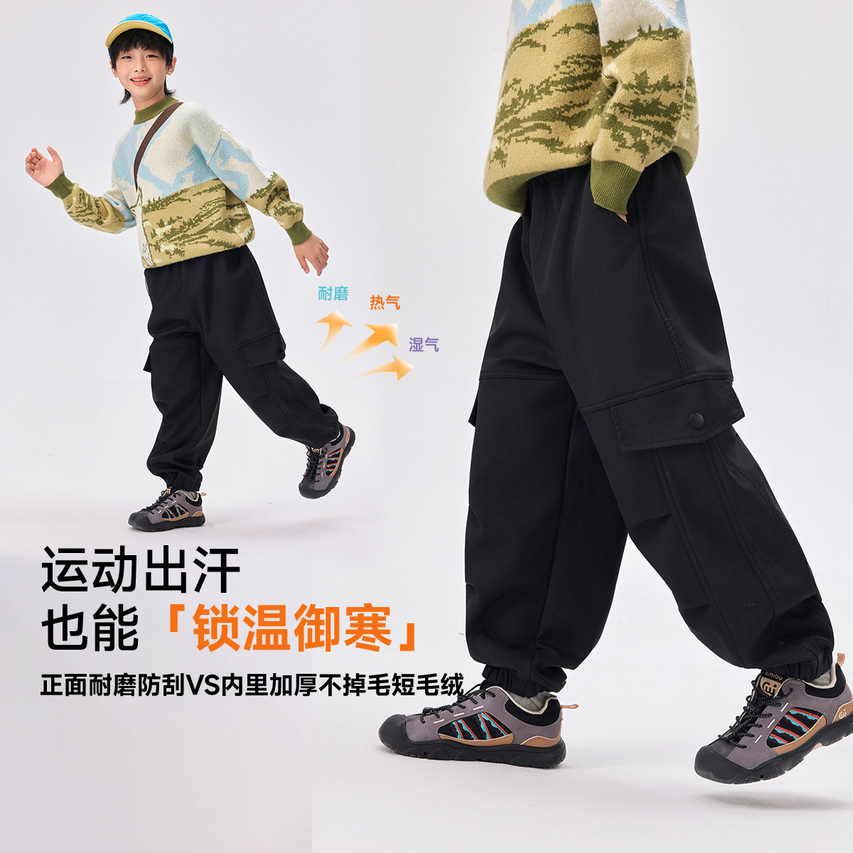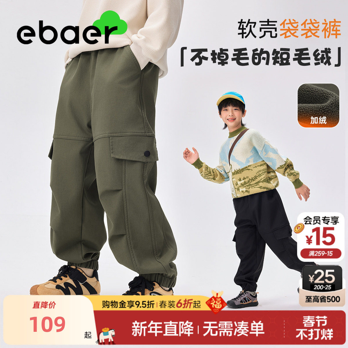 📚 ebaer儿童加绒工装裤2025冬装男童加厚保暖裤子女童软壳休闲长裤
