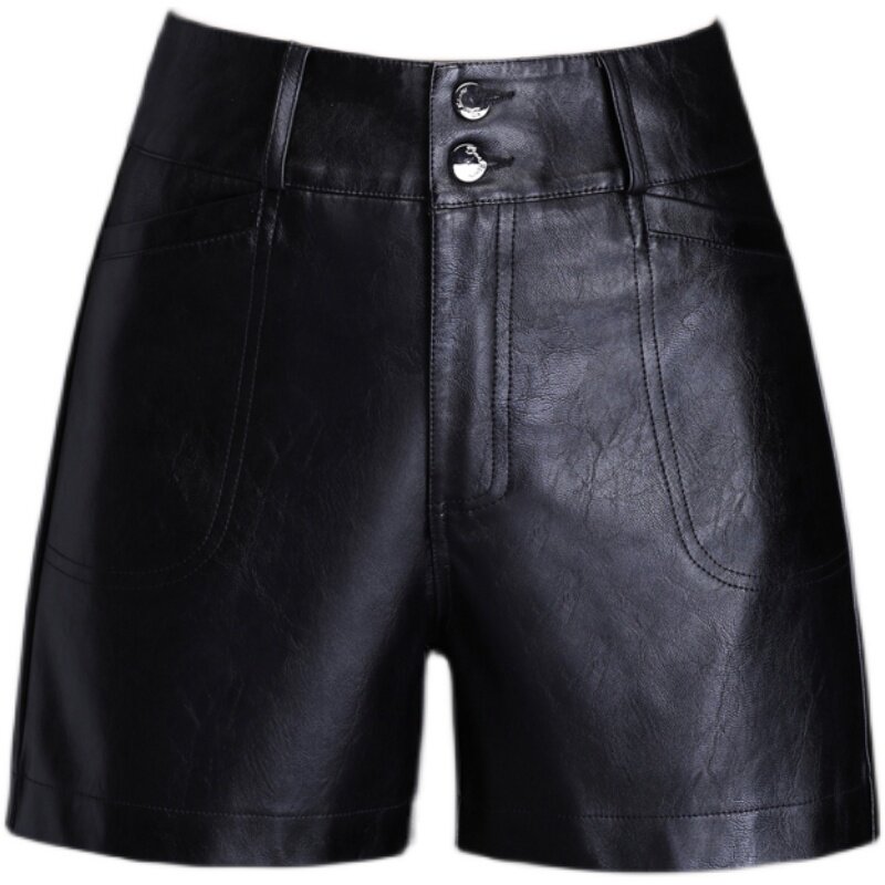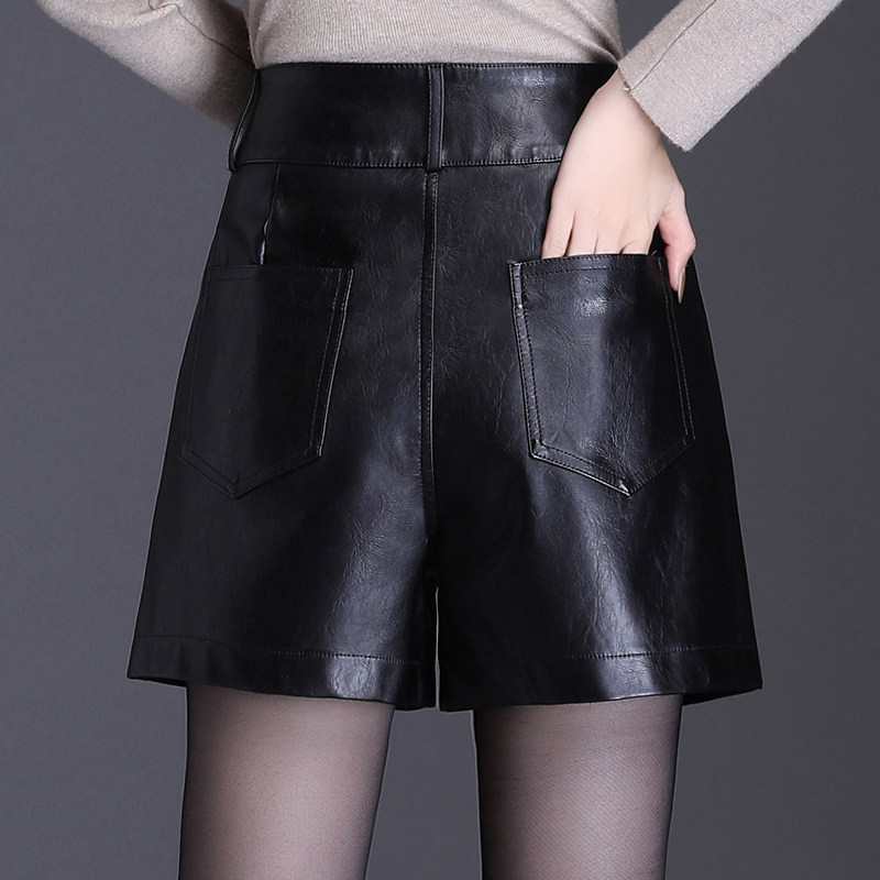 📚 高腰皮短裤女秋冬2025新款爆款秋季宽松阔腿显瘦a字版外穿短皮裤