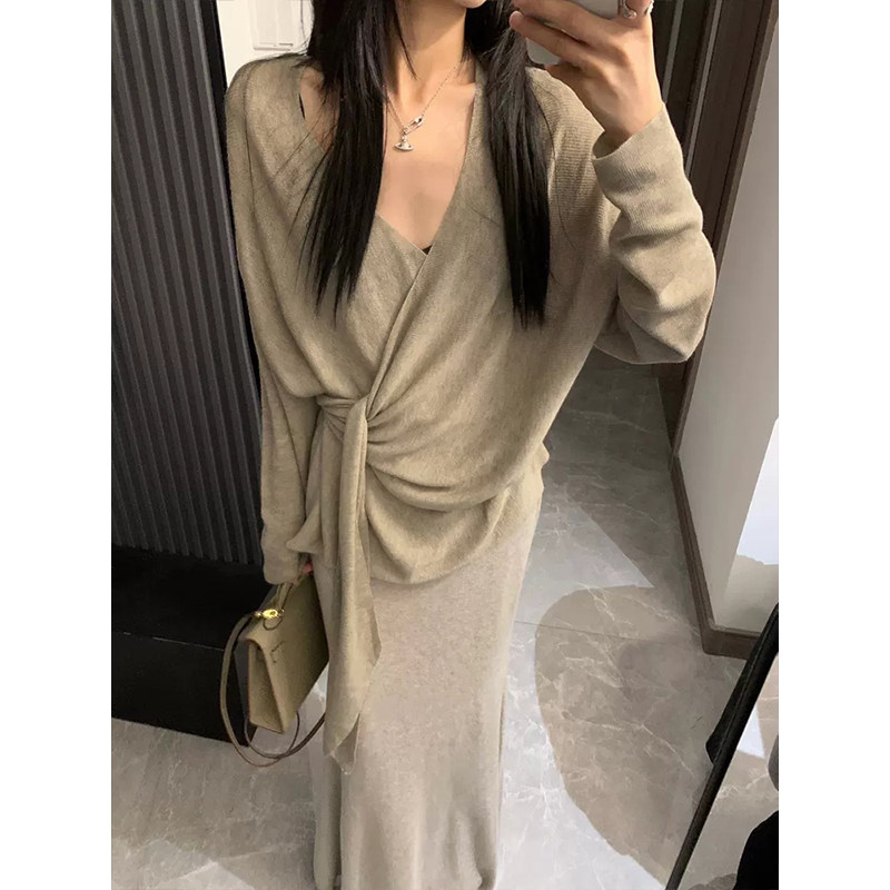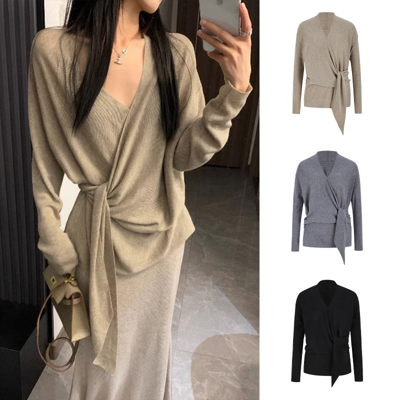 🎉姐妹们,今天我要给大家种草一款超级有设计感的针织衫!💖MosesQueen魔西女王两穿V领针织衫,简直是我近期的心头好!
