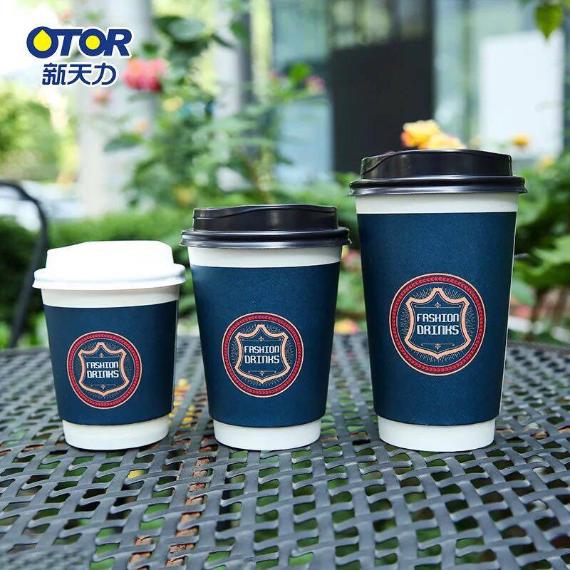 📚 新天力中空纸杯380 470m一次性加厚双层隔热带盖咖啡奶茶杯包邮
