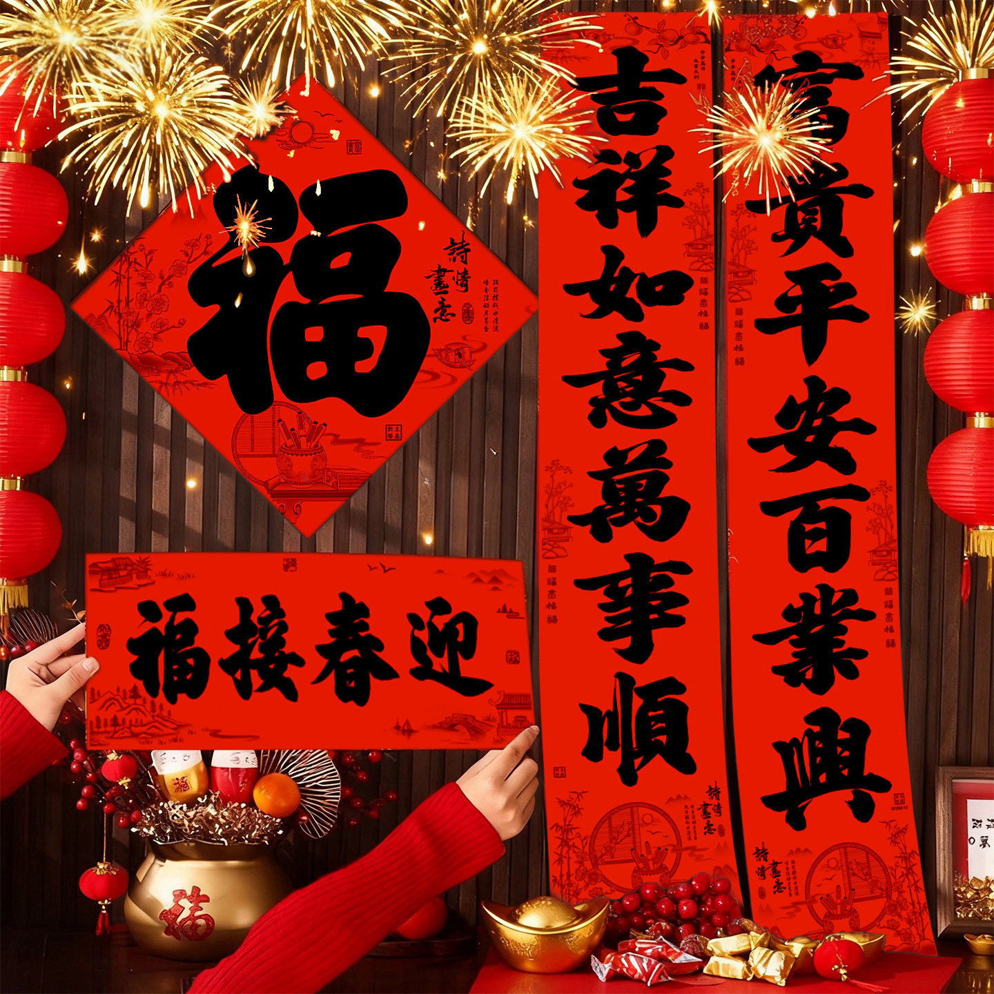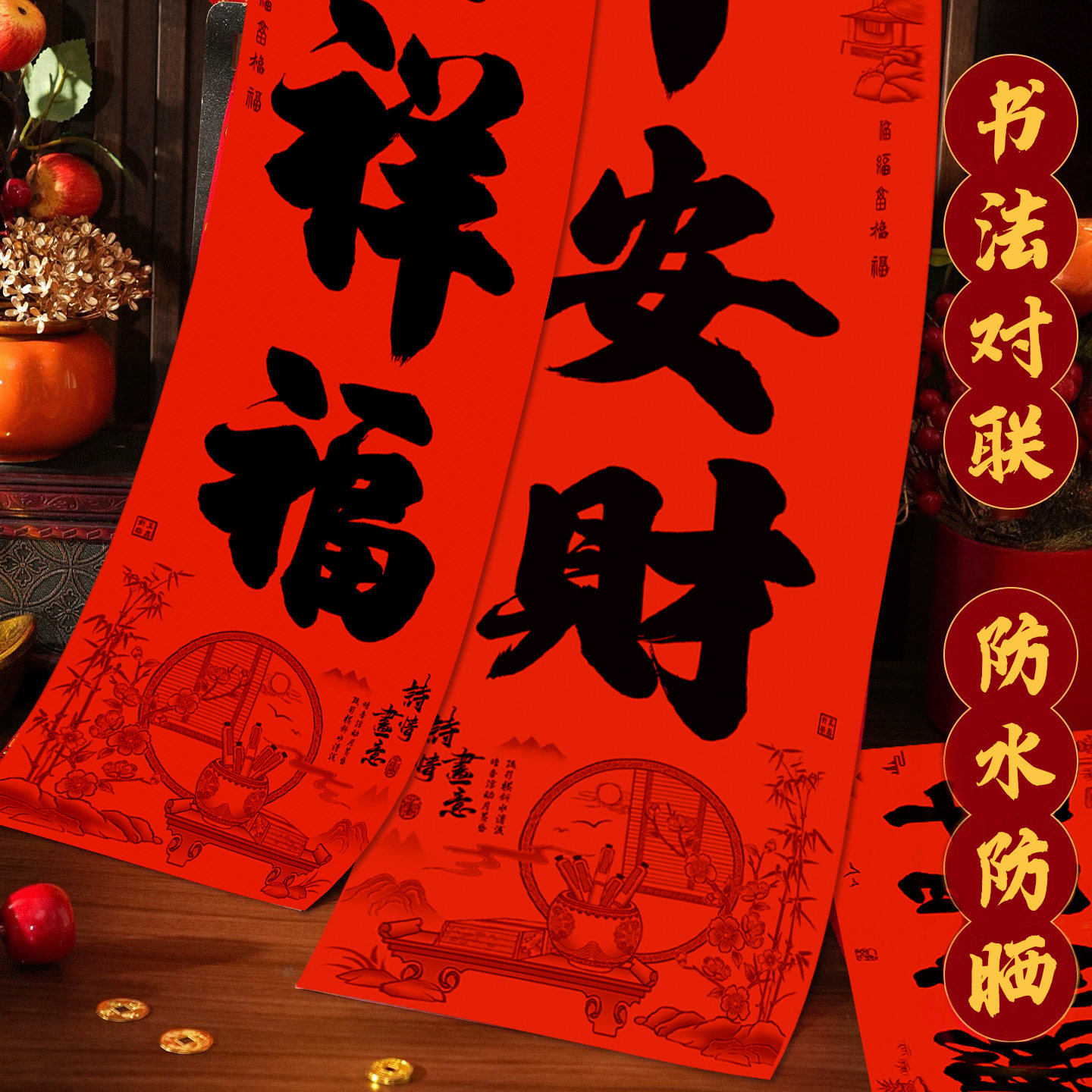 📚 2026年对联新款全背胶对联黑字书法春联福住宅小区入户门防水耐晒