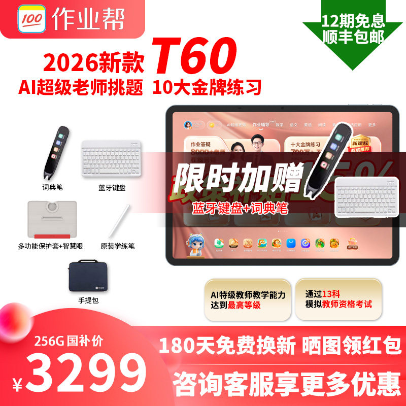 📚 【微信88券咨询减400】作业帮焕新版T60学习机2026年新款学生平板电脑学习机小学初中高中通用P60XES50P50T50