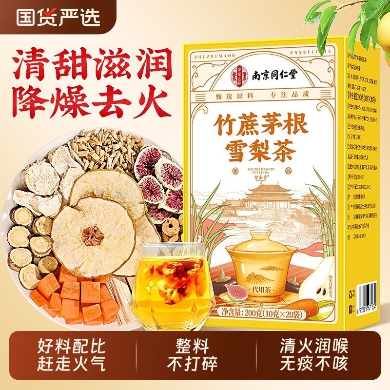 🍁同仁堂竹蔗茅根马蹄水雪梨秋冬润燥小吊梨汤养生茶!💖超值券后价来啦!