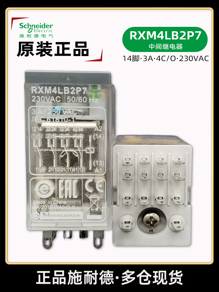 📚 施耐德 RXM4LB2P7 交流230V继电器 RXM230VAC中间继电器 14脚3A