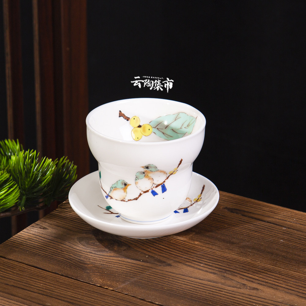 📚 日本进口九谷烧山雀鸟茶壶茶杯绣眼鸟餐碟盘子茶具小鸟品茗主人杯