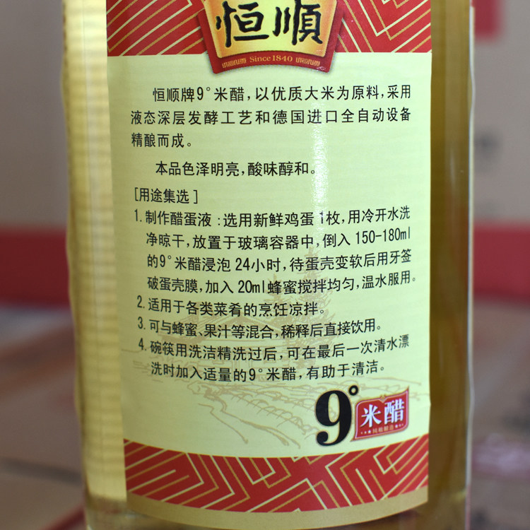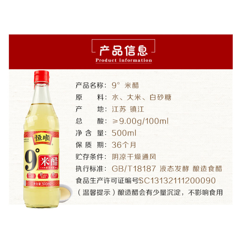📚 镇江恒顺9度米醋500ml醋泡鸡蛋黑豆水果酿造九度食用米醋