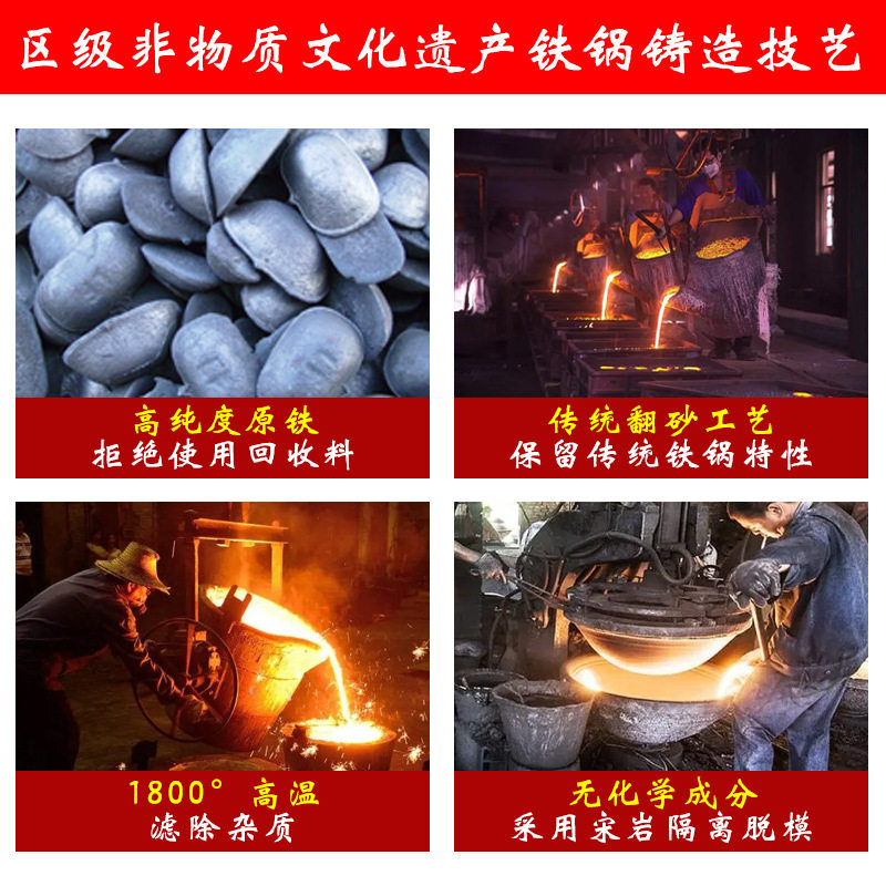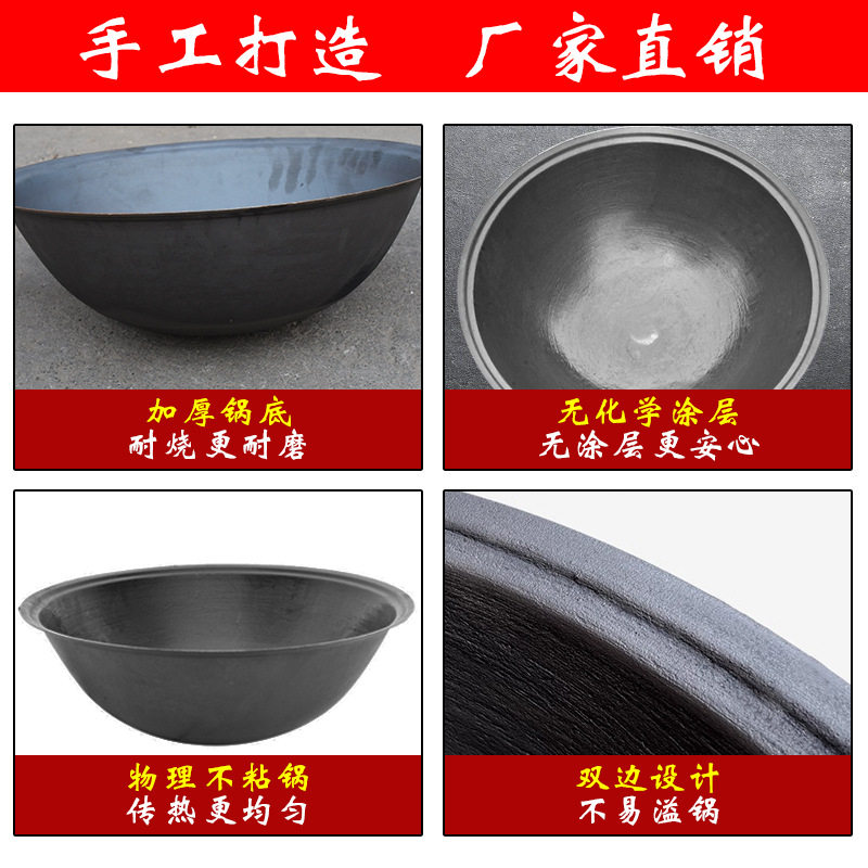 📚 加厚铸铁大铁锅老式生铁锅家用农村传统灶台柴火土灶专用特大号锅