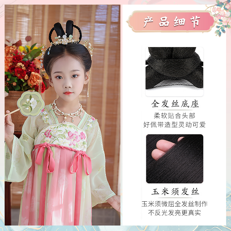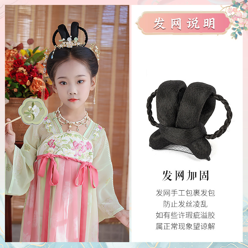 📚 儿童汉服假发古装发箍一体式古风垫发包女童盘发发髻表演造型头饰