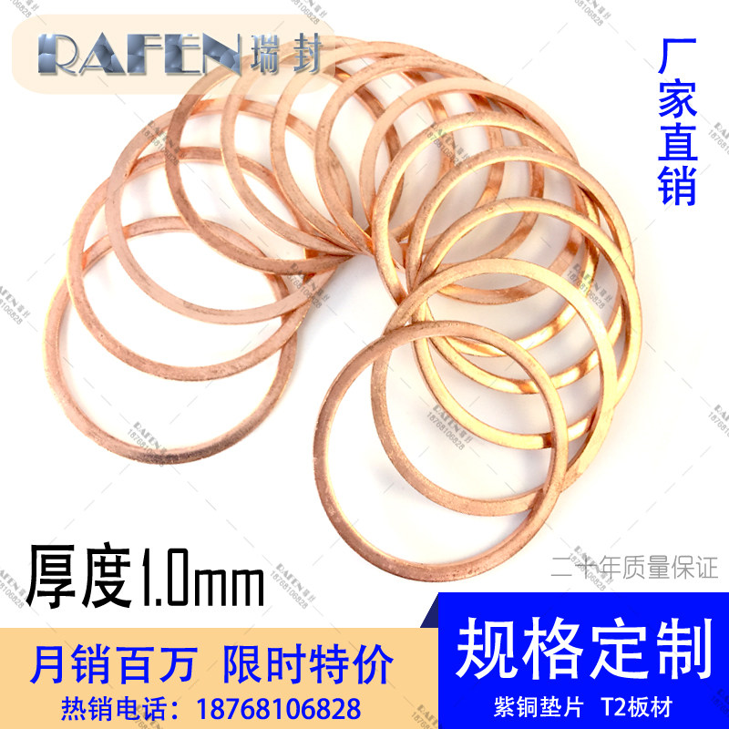 📚 厚1.0mm紫铜垫片M4M5M6M7M8M9M10M11M12M13M14M16M17铜介子 垫圈