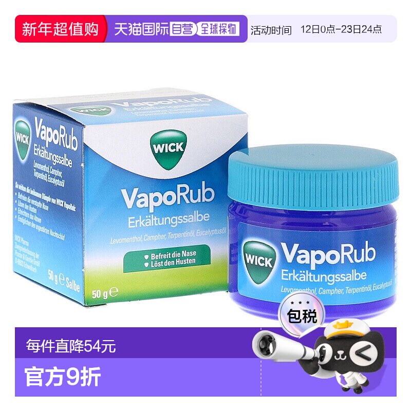 48¥ HU006 UmCoUnhwaJf¥ https://m.tb.cn/h.7xgaUaA 欧洲直邮德国WICK儿童感冒通鼻通气按摩膏 缓解鼻塞50g 2岁+止咳 --------------------- 【原售价】319元 【现售价】199元。