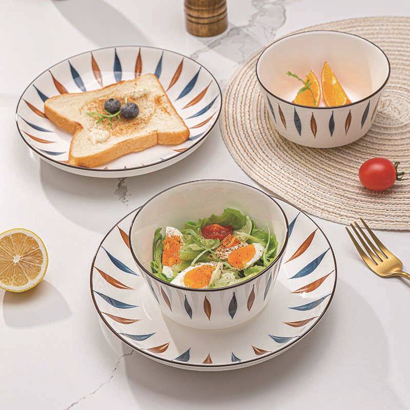 📚 碗具家用套装高颜值双色千叶草简约格调通用陶瓷碗盘餐具碗碟套裝