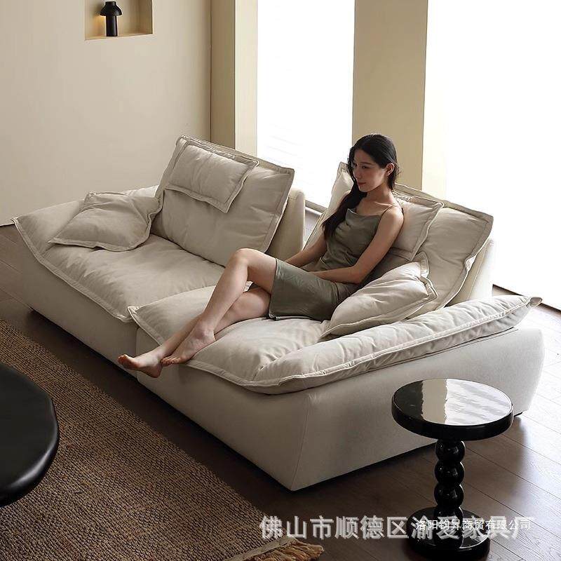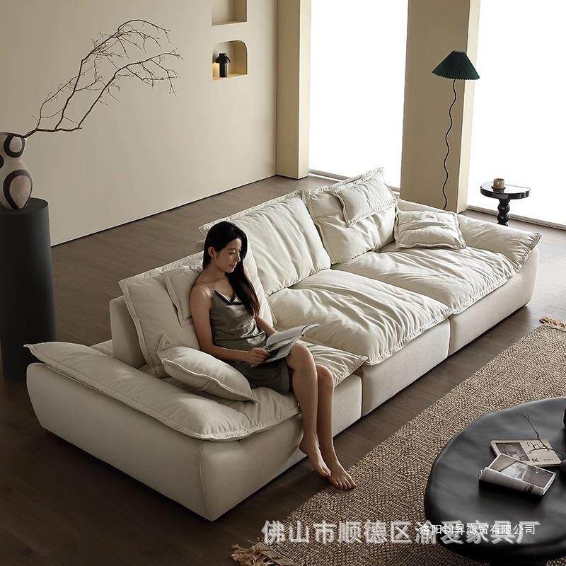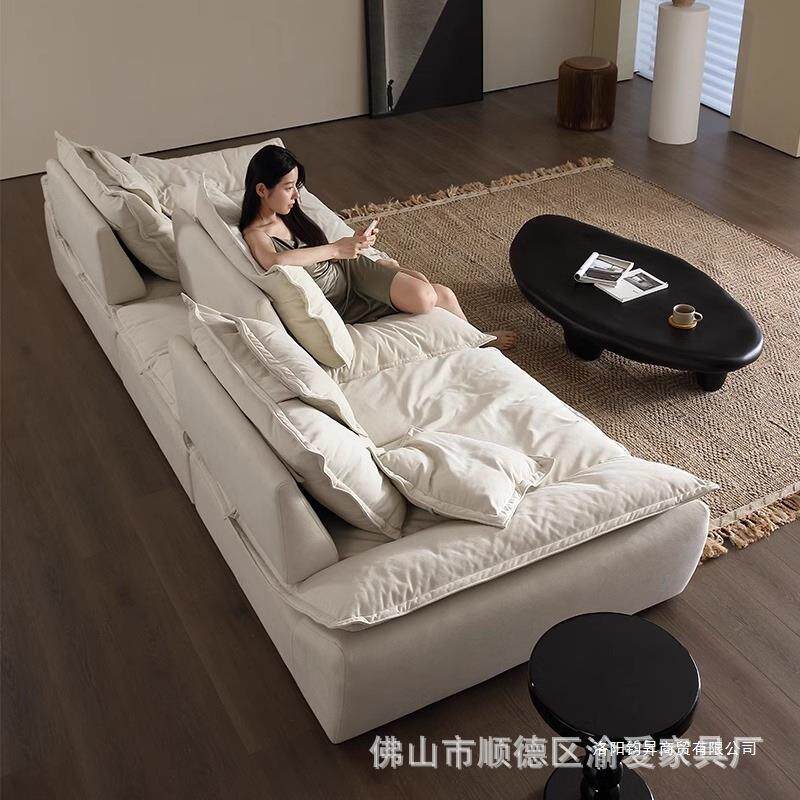 📚 可调节翻船沙发现代磨砂布艺羽绒大坐深客厅大小户型奶油风猫抓布