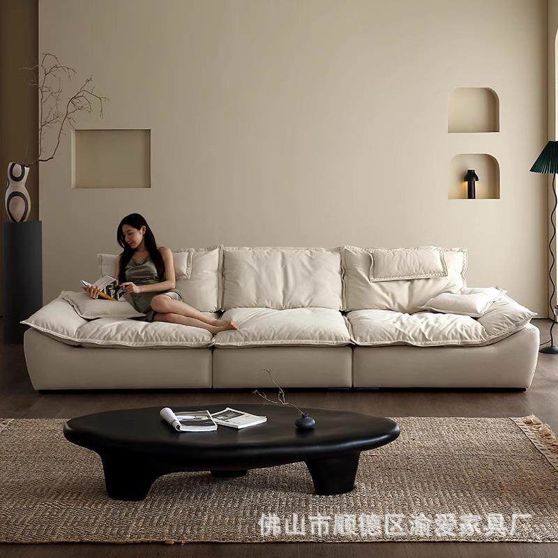📚 可调节翻船沙发现代磨砂布艺羽绒大坐深客厅大小户型奶油风猫抓布