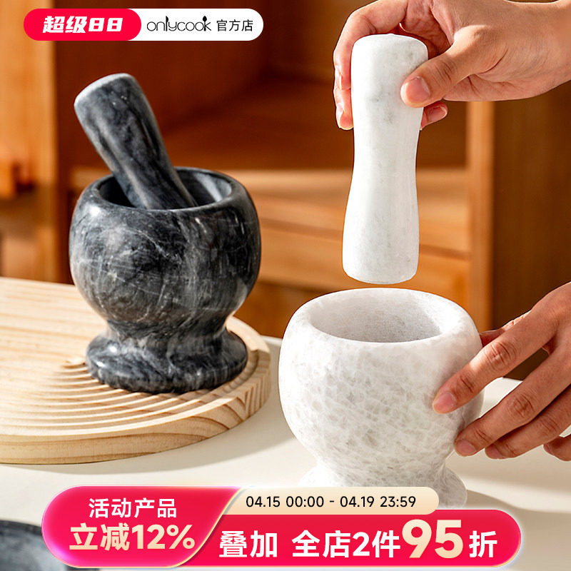 📚 onlycook天然大理石捣蒜器家用老式石臼捣药研磨器手动压蒜打蒜泥
