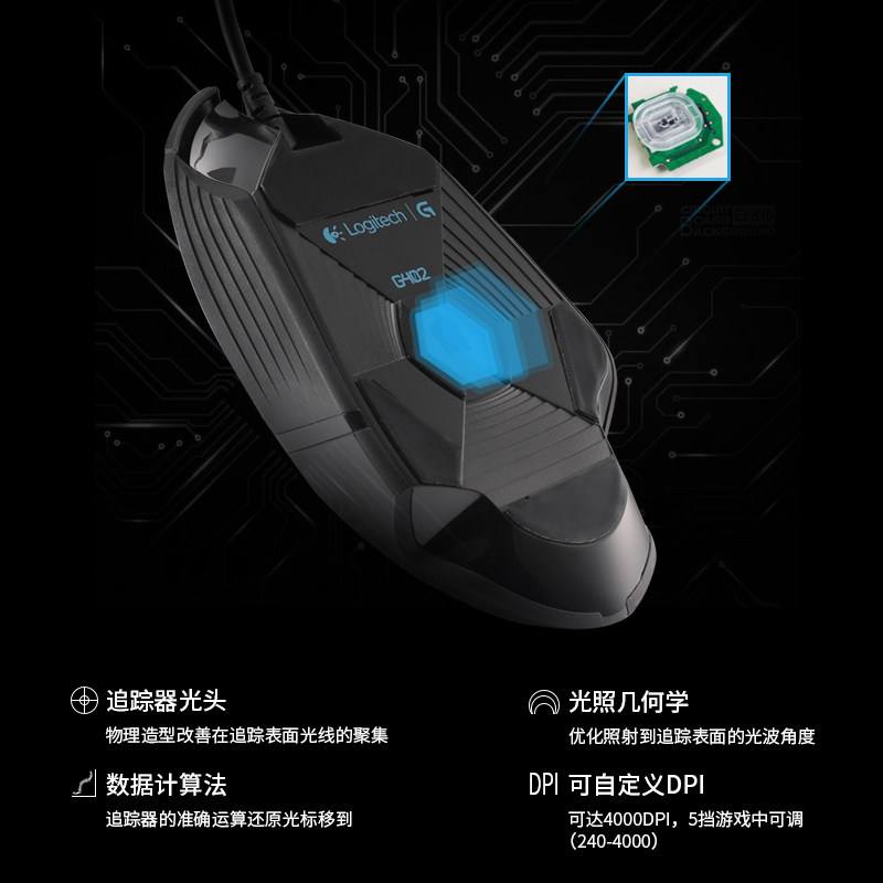 📚 罗技G402游戏鼠标有线8键可编辑宏电竞专用LOL魔兽吃鸡cf机械鼠标