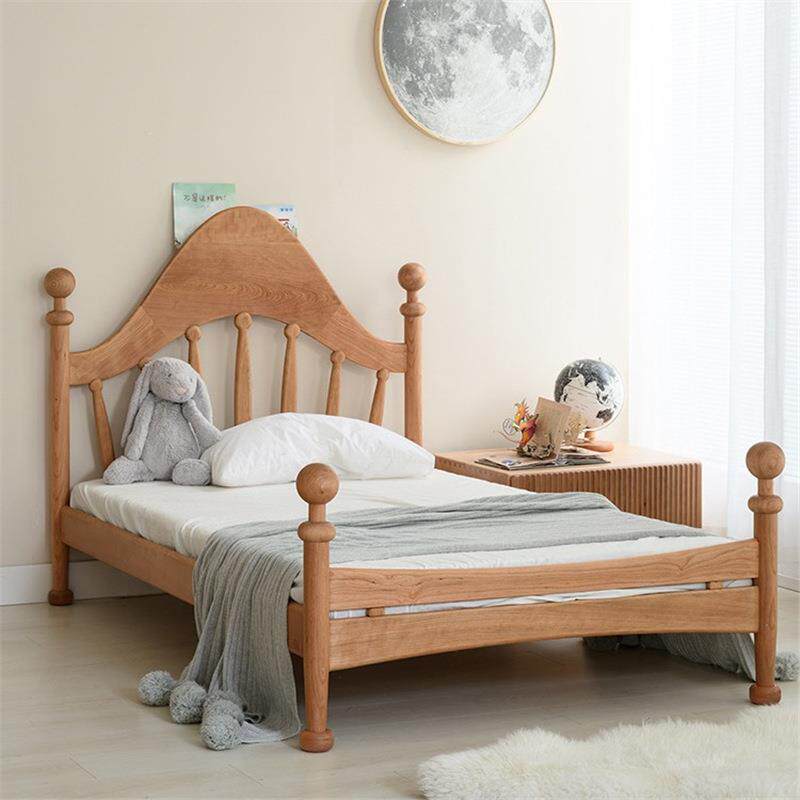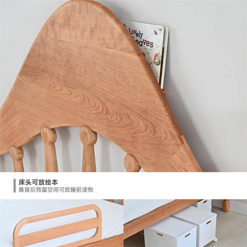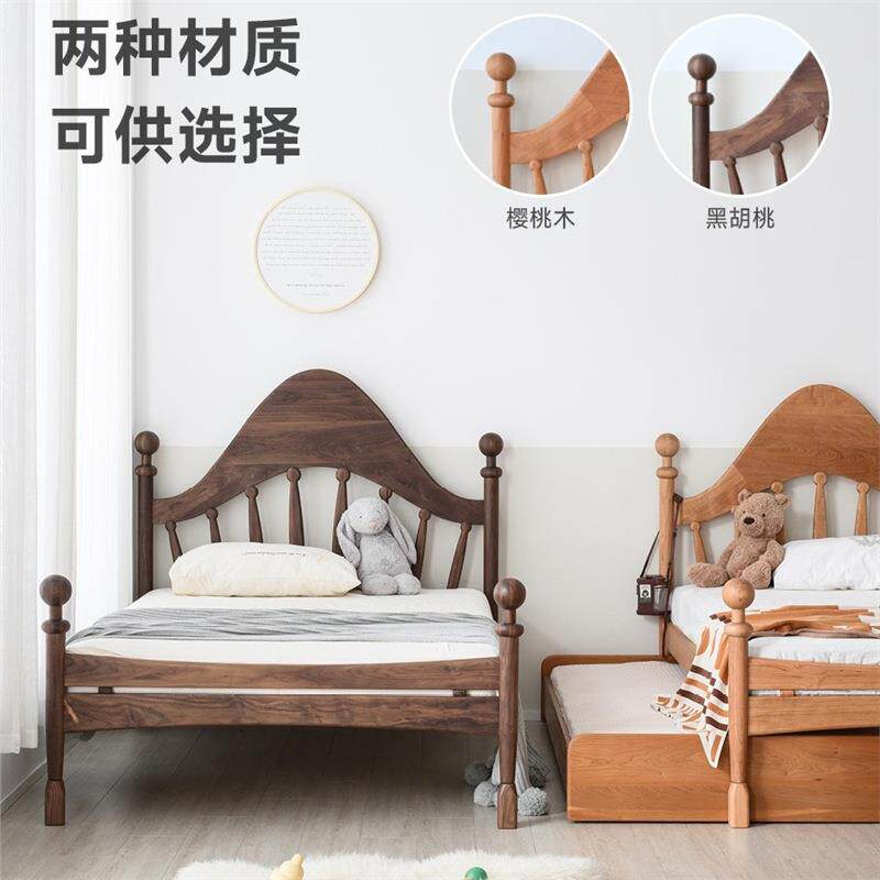 📚 日式复古全实木提琴床黑胡桃木儿童床樱桃木北欧单人床公主床简约