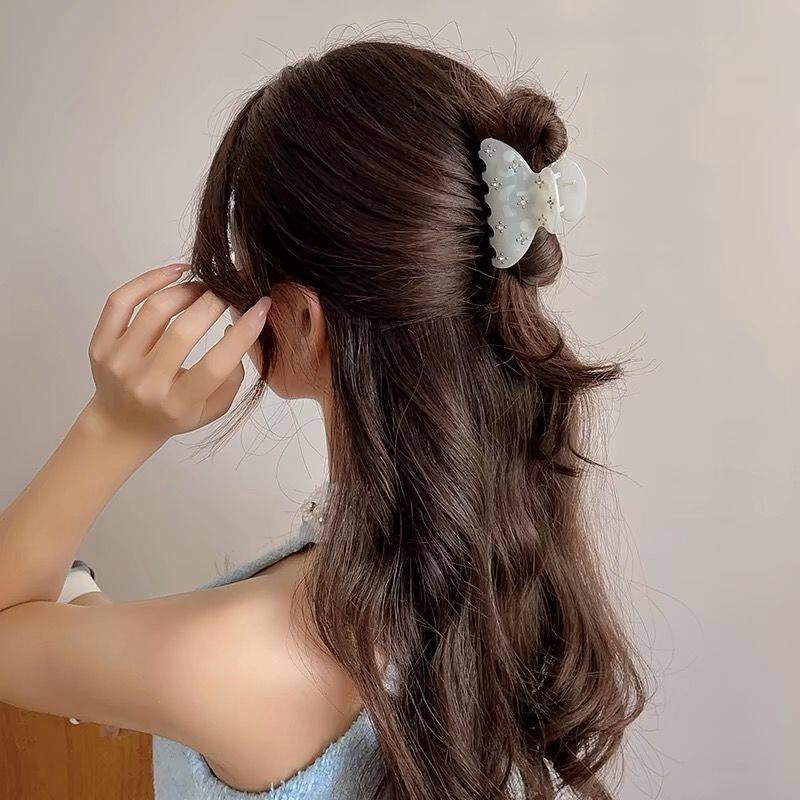 📚 繁星镶钻鲨鱼夹个发量少半扎发夹子后脑勺发饰女高级感抓夹韩系