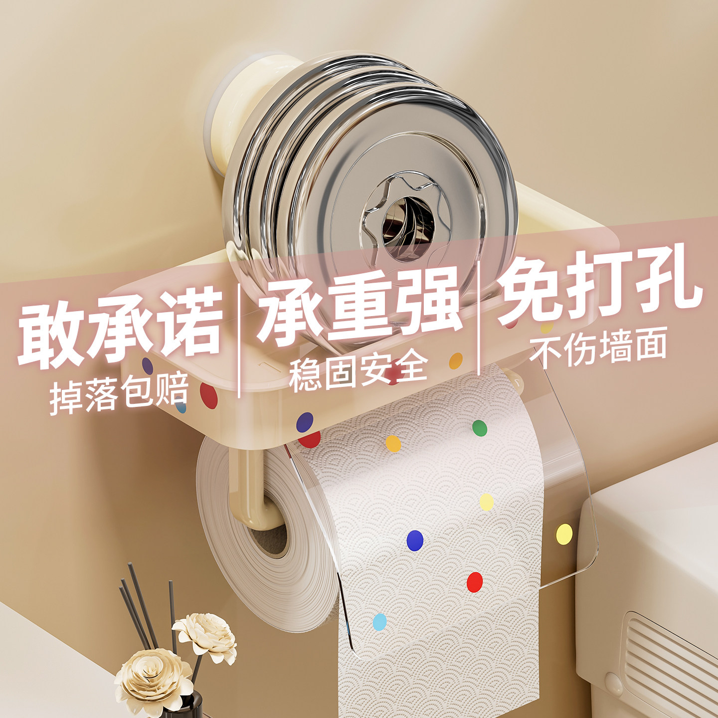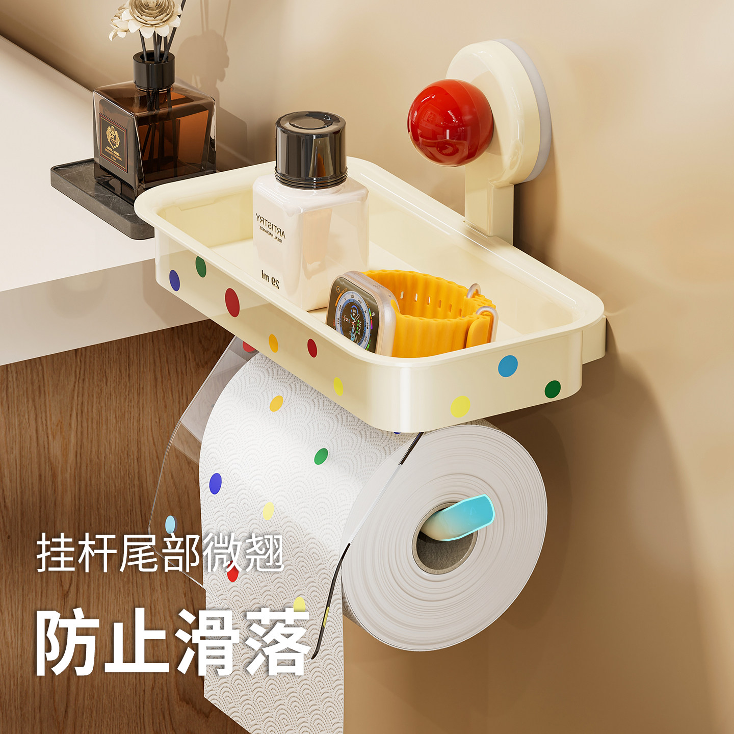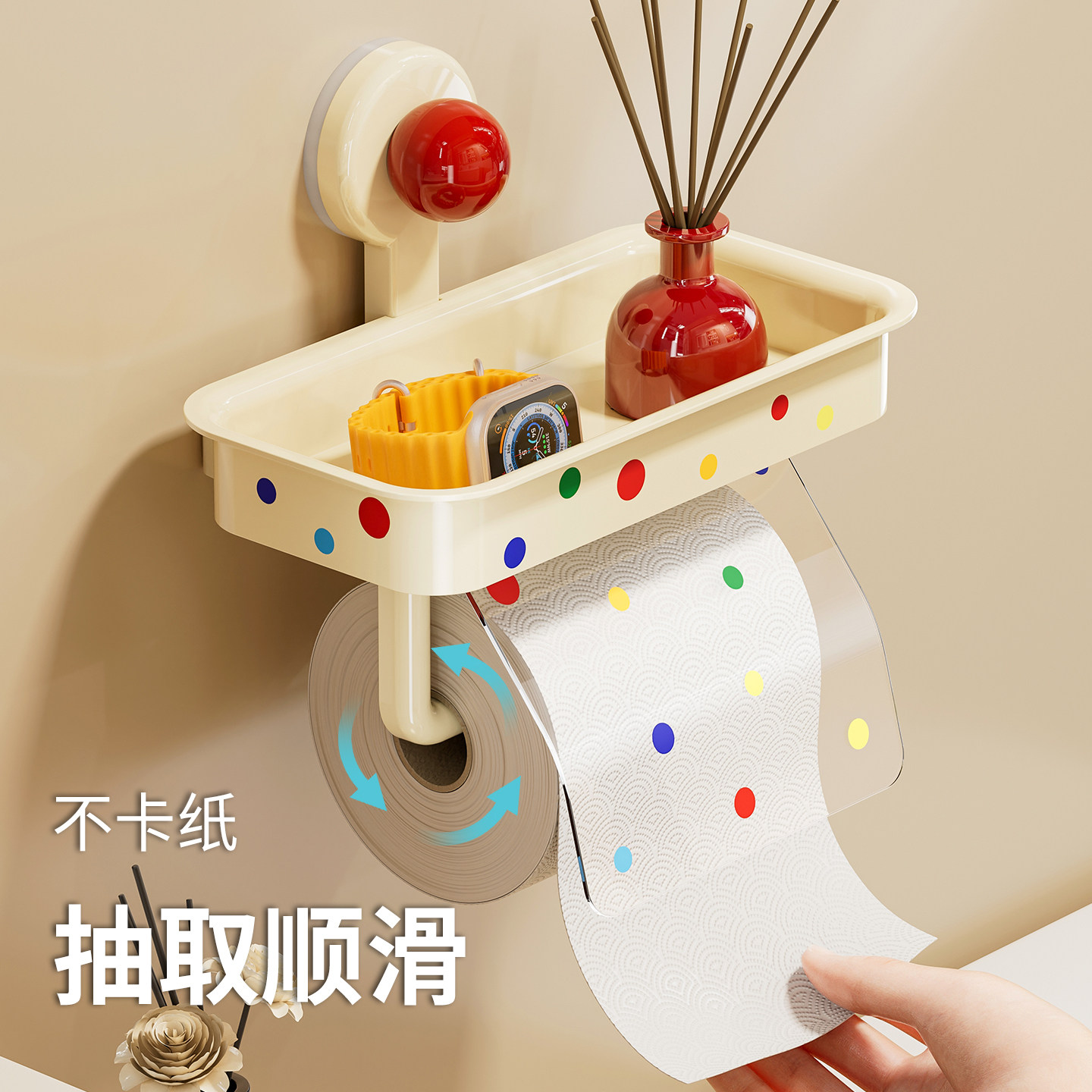 📚 吸盘卫生间厕纸盒壁挂式免打孔家用多功能置物架浴室厕所卷纸挂架