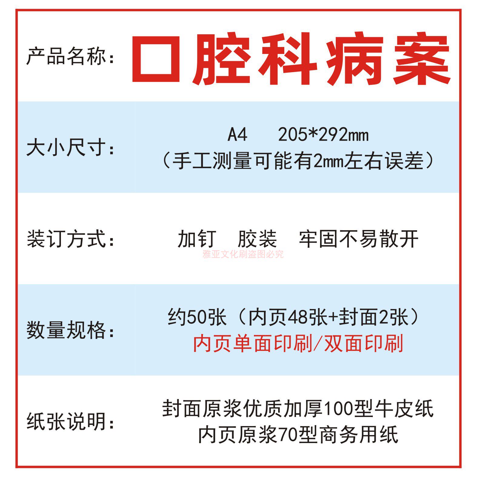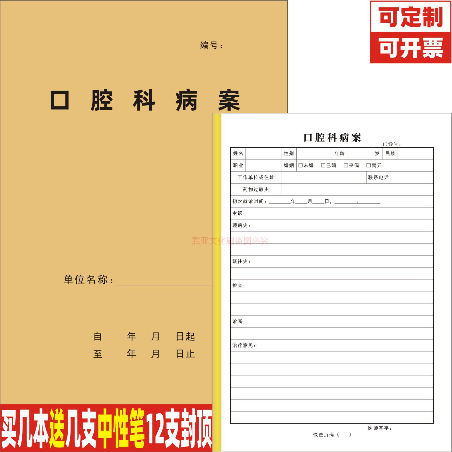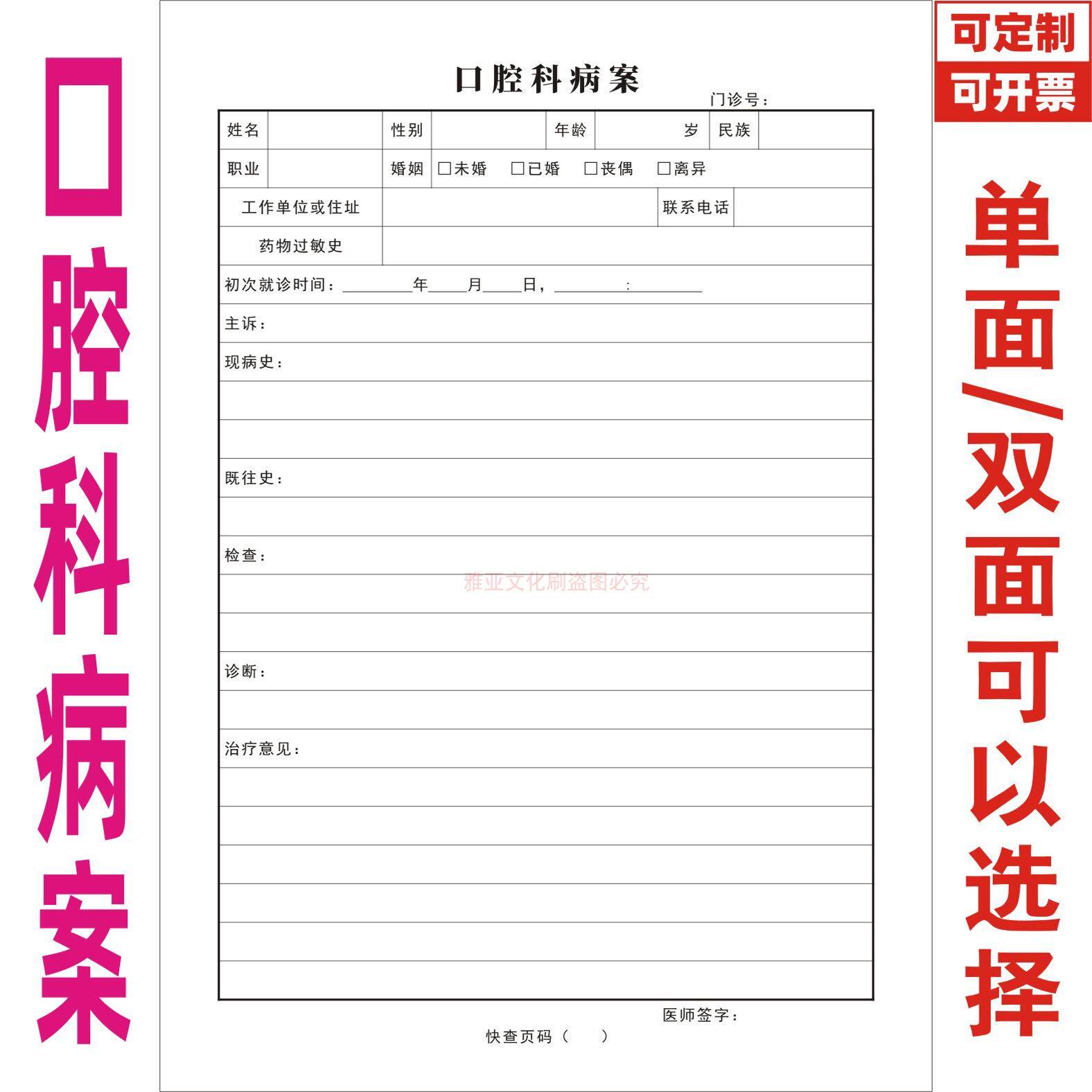 📚 口腔科病案牙科医院患者就诊病历检查病史治疗意见诊断记录本定制
